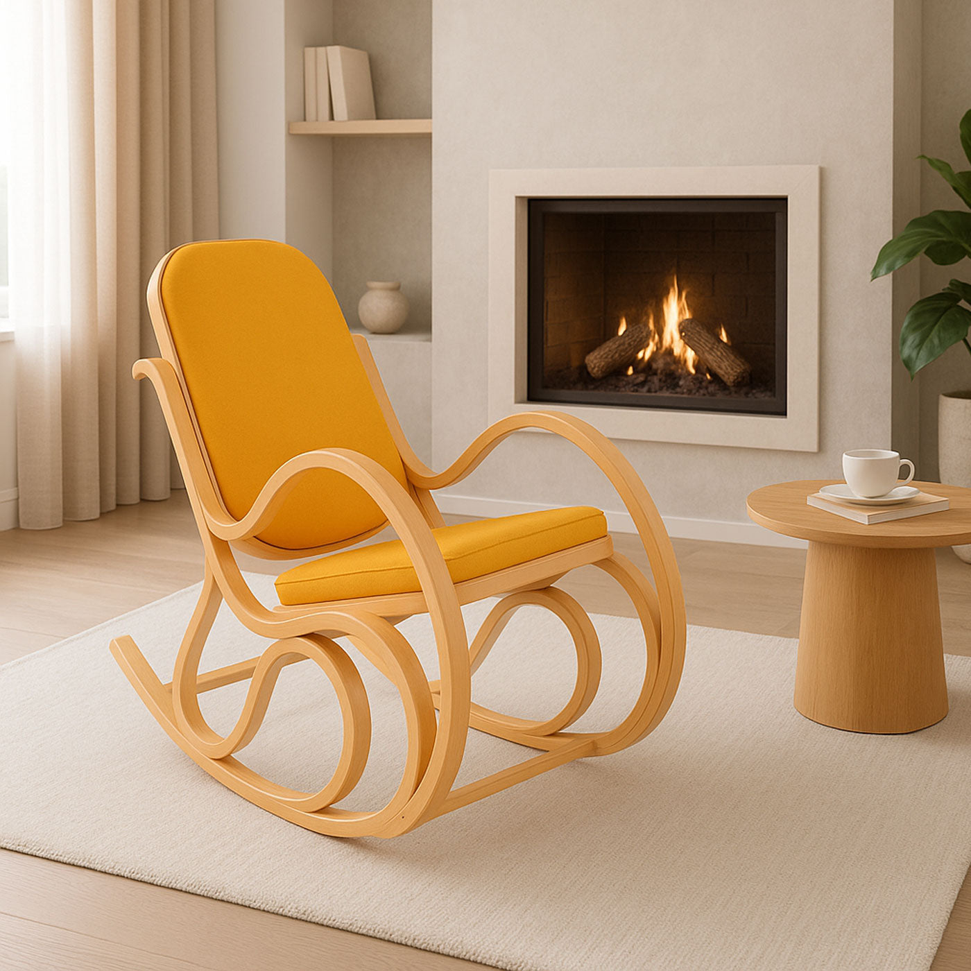 Cosmo Casa - Schommelstoel - TV-Stoel met Armleuningen - Massief Hout - Eikenlook - Geel