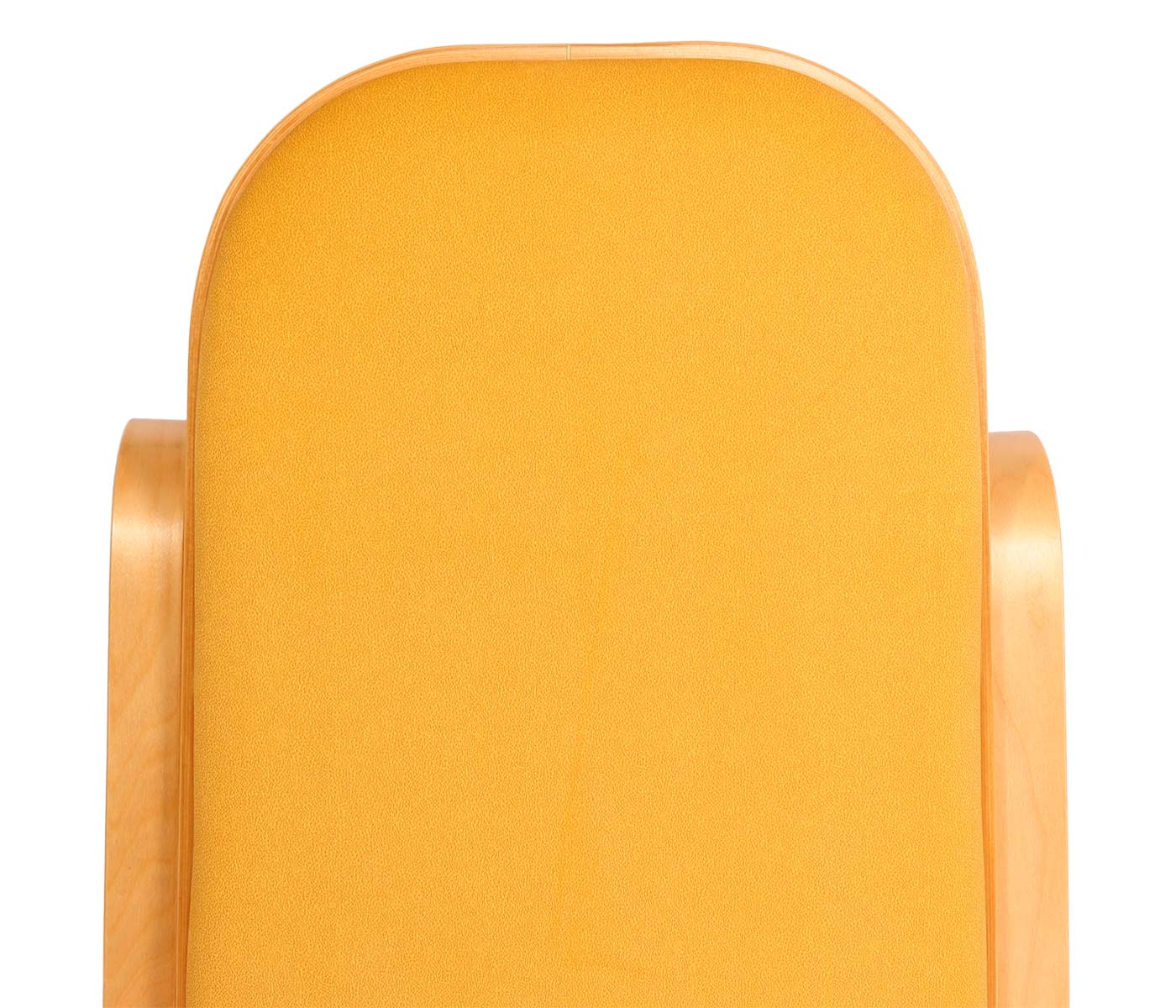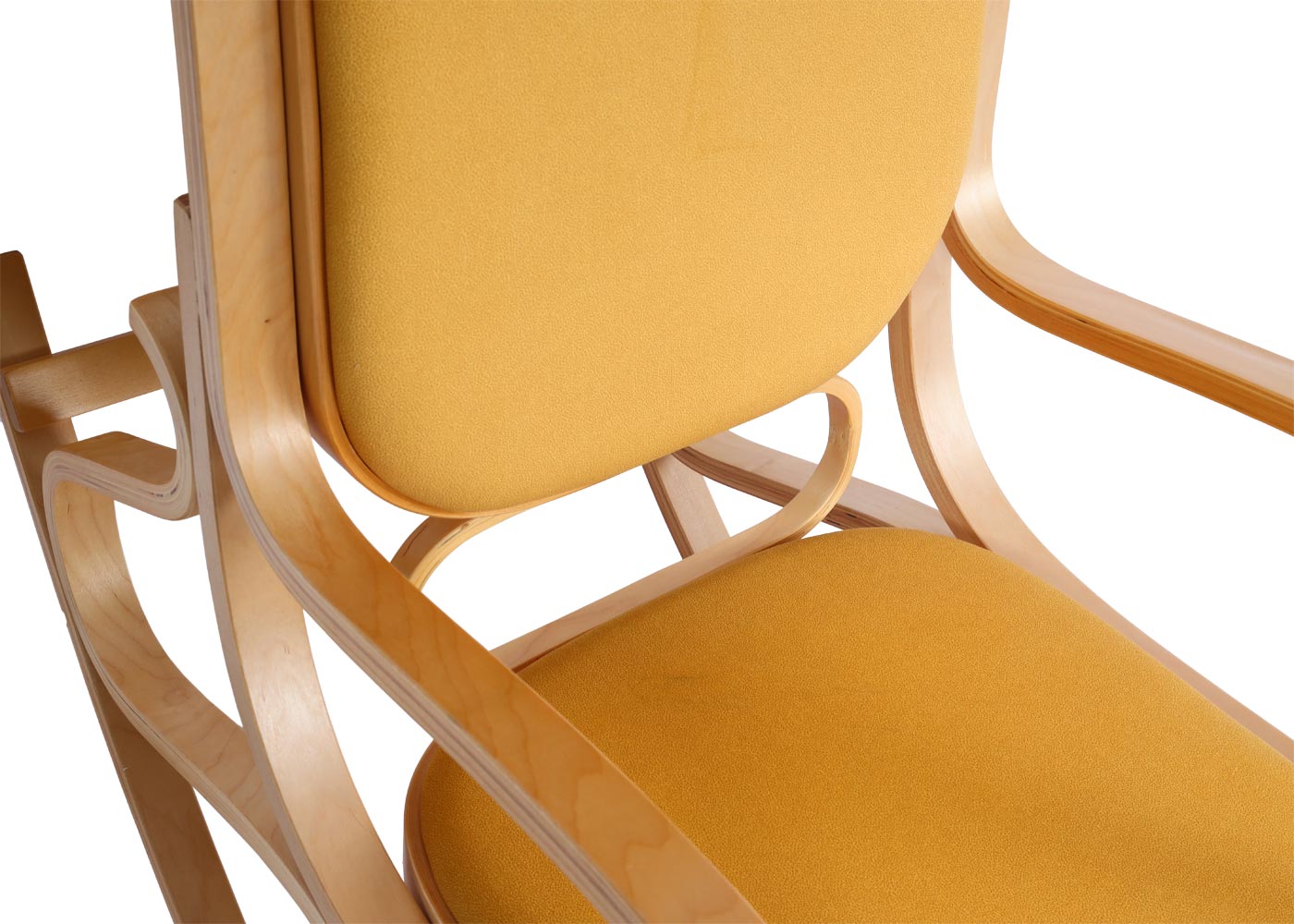 De prachtig versierde armleuningen benadrukken de retrolook die schommelstoelen doorgaans uitstralen, waardoor dit product een echte moderne klassieker is. Het robuuste houten frame, dat qua kleur perfect aansluit bij de gekozen meubelstof, zorgt voor langdurig zitplezier.