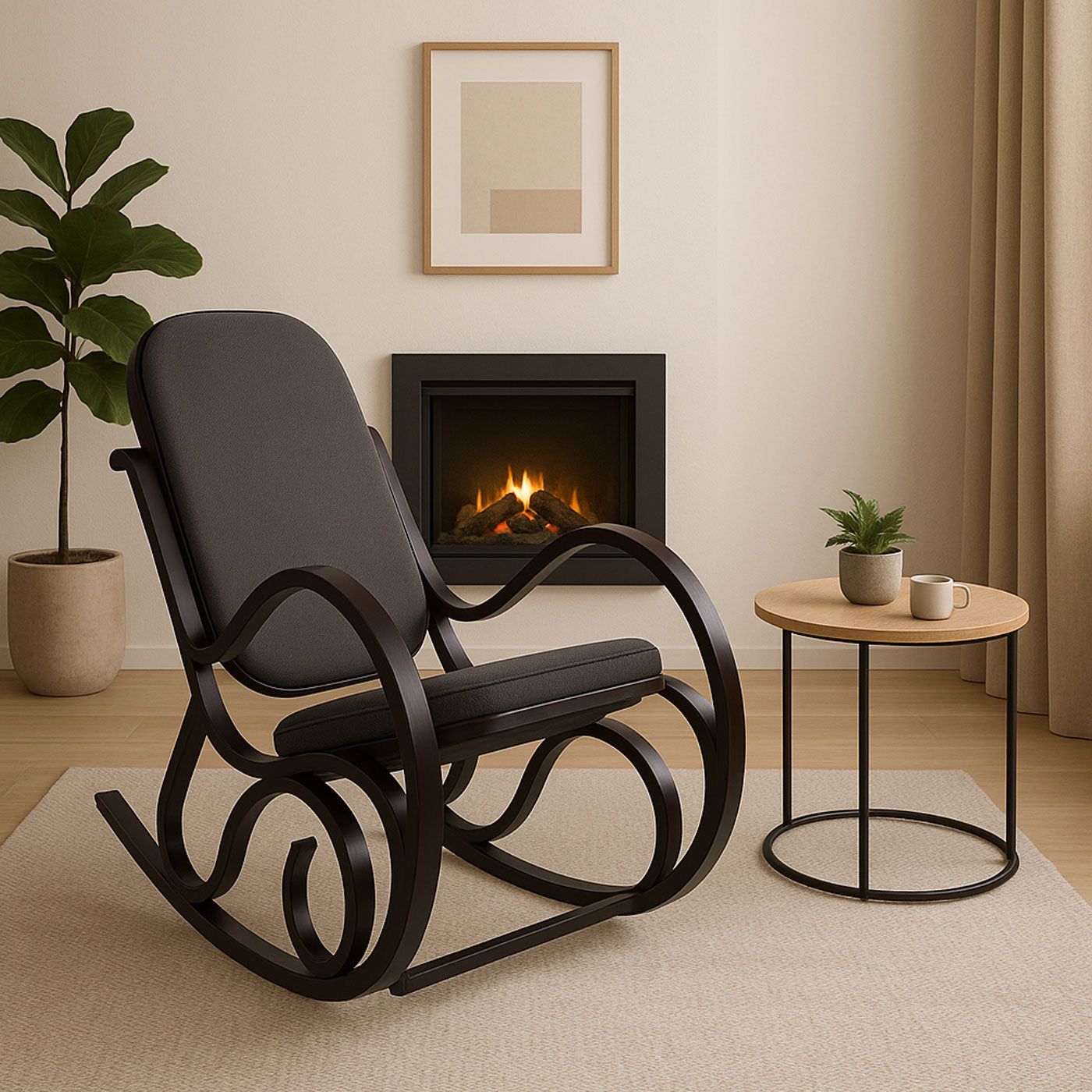 Cosmo Casa - Schommelstoel - TV-Stoel met Armleuningen - Massief Hout - Walnootlook - Antracietgrijs