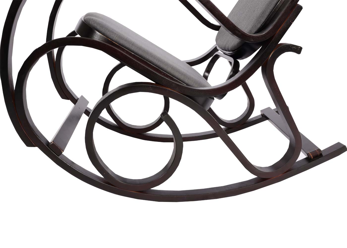 De prachtig versierde armleuningen benadrukken de retrolook die schommelstoelen doorgaans uitstralen, waardoor dit product een echte moderne klassieker is. Het robuuste houten frame, dat qua kleur perfect aansluit bij de geselecteerde meubelstof, zorgt voor langdurig zitplezier.