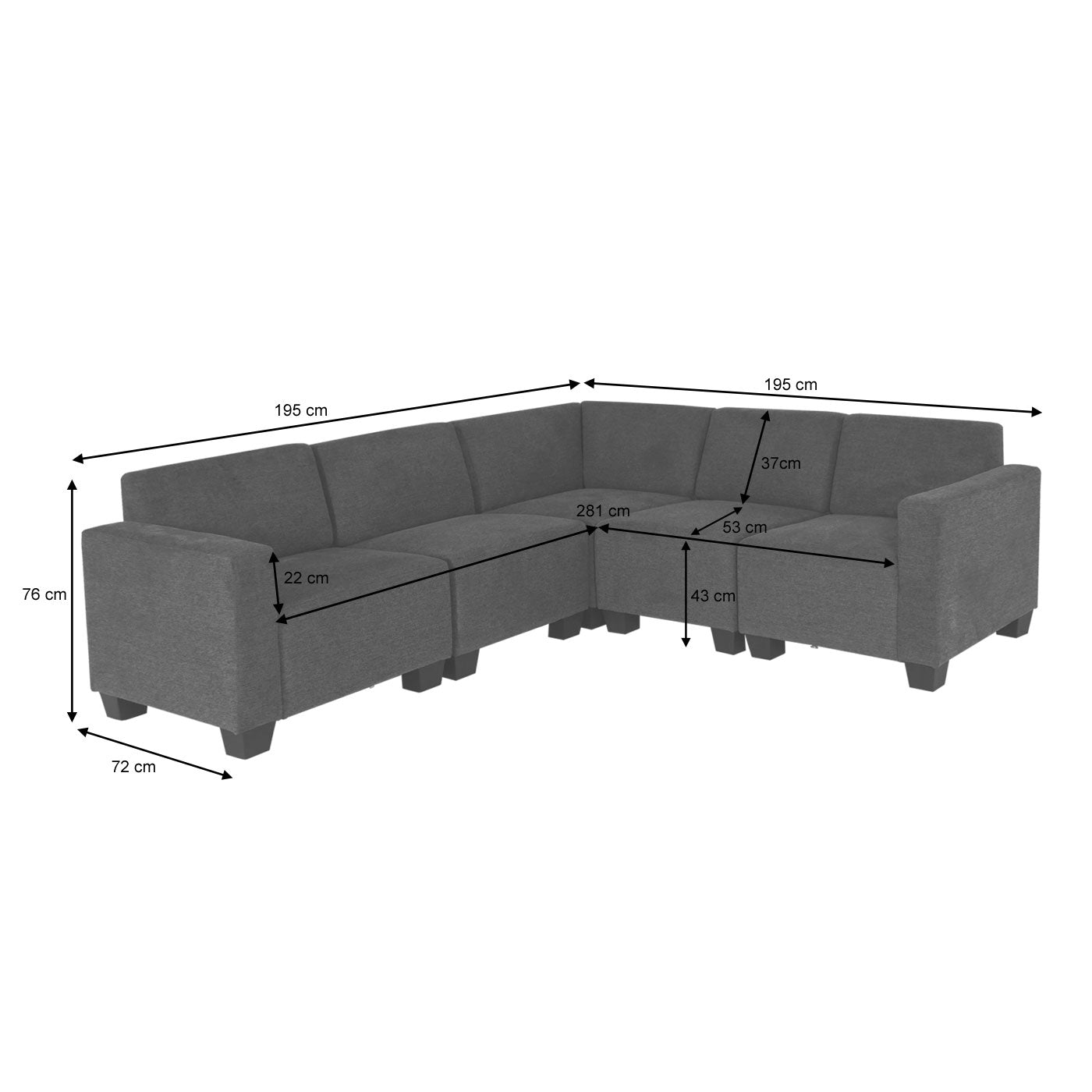 - 5-zits (bestaande uit 1x hoekelement, 2x middenelement en 2x zijelement)- BSCI sociale normen getest- Clipsysteem- Moderne loungestijl- Comfortabele zitbekleding- Hoge stabiliteit- Afgeronde hoeken en randen- Uitbreidbaar met andere elementen uit de Lyon serie- Maximaal draagvermogen per zitting:...