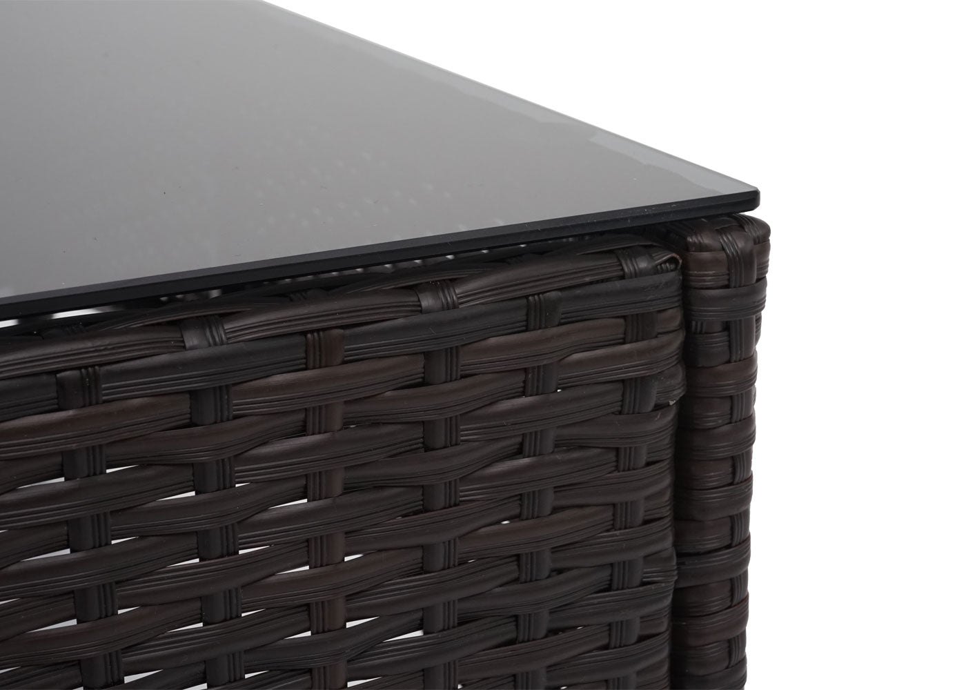 Dankzij het eenvoudige ontwerp past deze zitset naadloos in elke omgeving en ziet er altijd uit alsof hij erbij hoort. De kleurencombinatie van de zitkussens en het polyrotan werpt een heel bijzonder licht op de zitset en zorgt voor een smaakvolle, ronde uitstraling. Alles wat je nodig hebt om te ontspannen, kun je kwijt op de tafel. Of het nu gaat om brochures, zonnebrandcrème, drankjes of snacks.