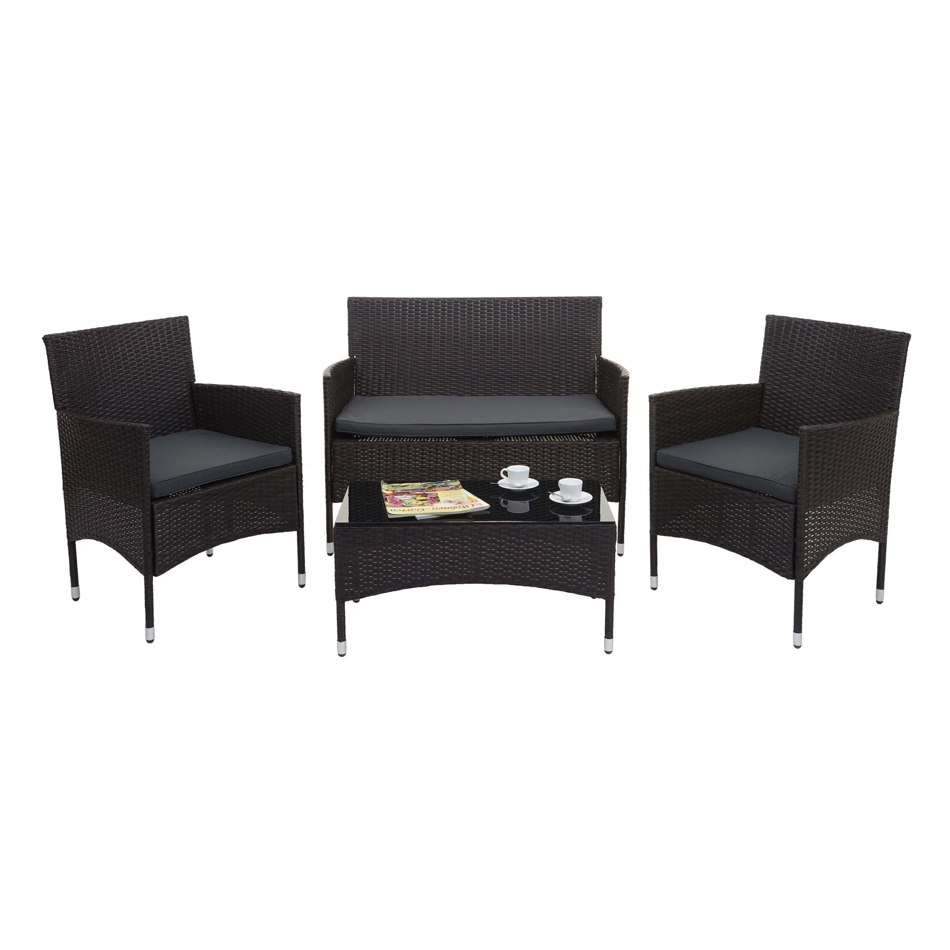 Cosmo Casa - Polyrotan Set - Balkon Tuin Loungeset Bank Zitgroep - Bruin met Donkergrijze Kussens