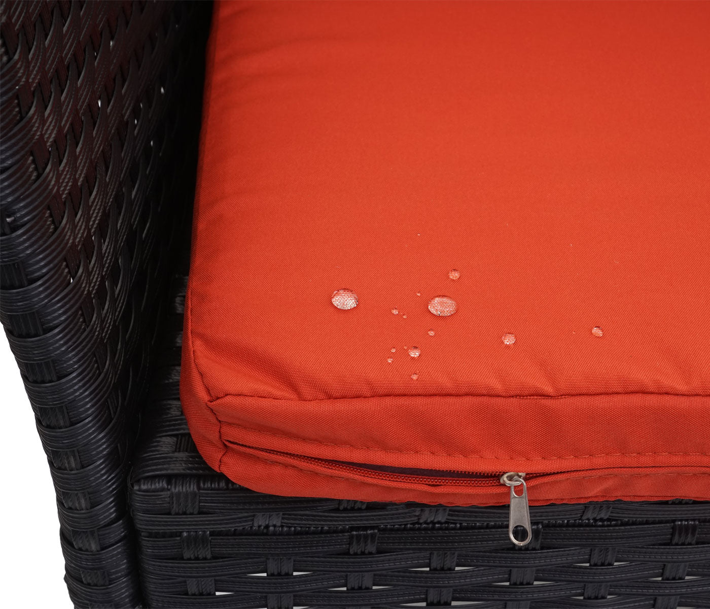 Cosmo Casa - Tuinbank - Polyrotan Bank met Tafel - Staal en Kussen - Zwart met Terracotta
