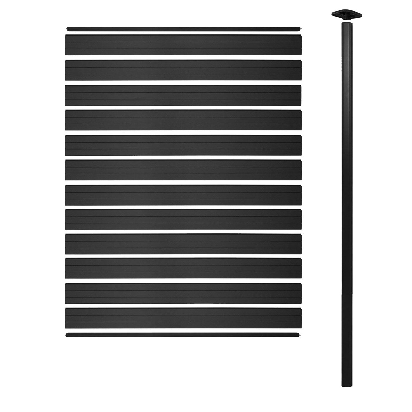 Cosmo Casa - WPC Privacyscherm Sarthe - Windscherm & Verlengelement - Aluminium Palen om in Beton te Plaatsen - Antraciet - 1,85 m | Standaard | €1.039,95