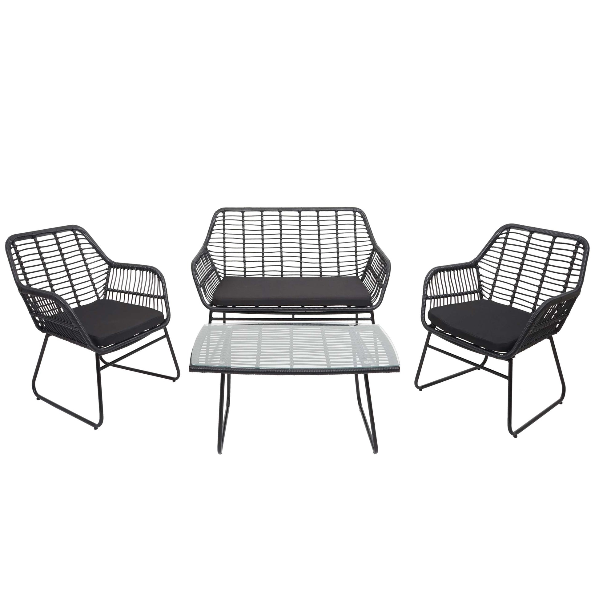 - Deze moderne loungeset is niet alleen visueel aantrekkelijk, maar overtuigt ook door zijn robuuste constructie en hoge zitcomfort dankzij de zachte zitkussens. Dit zorgt voor een comfortabel verblijf gedurende een langere periode.