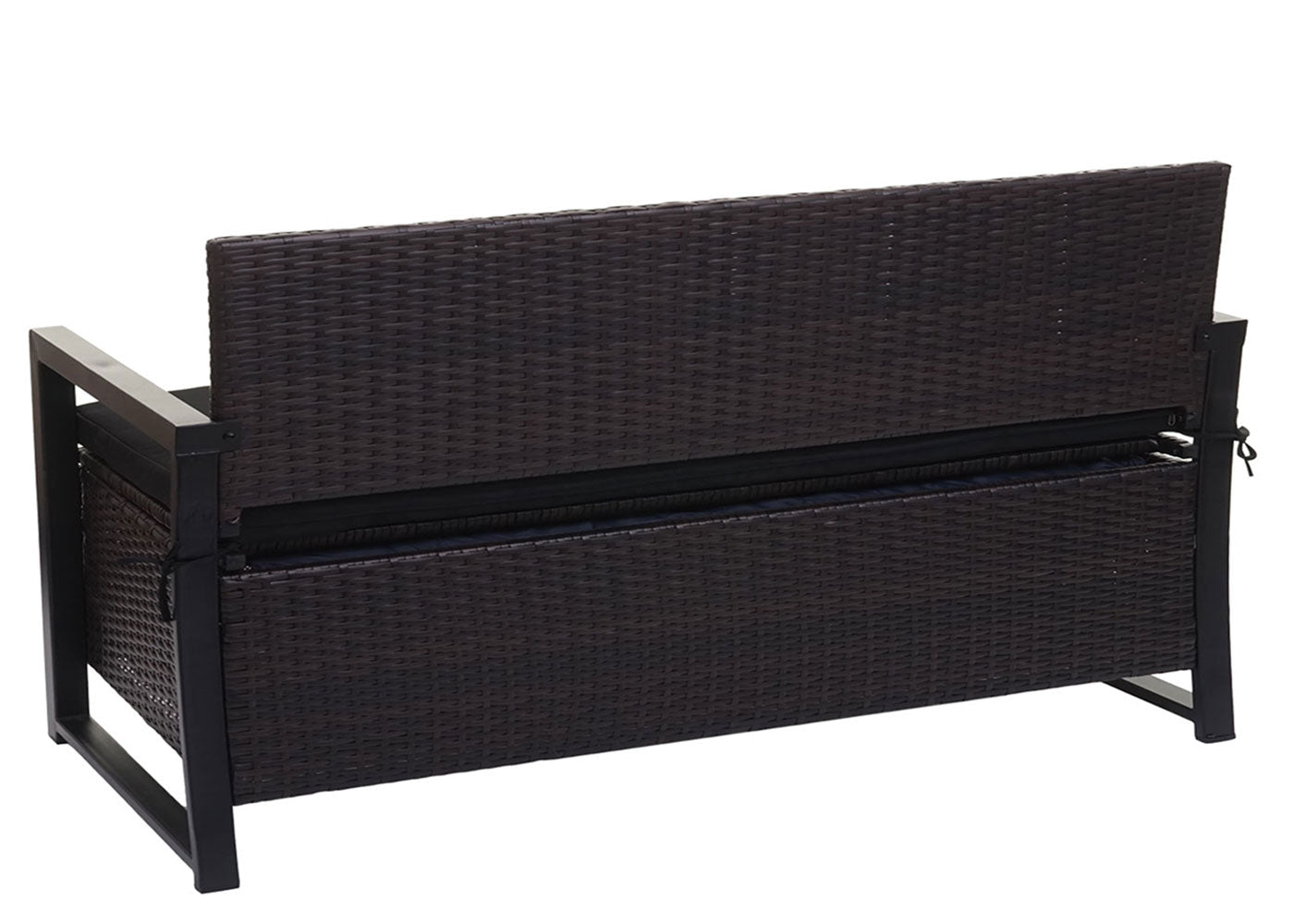 Cosmo Casa - Polyrotan 3-Zitsbank - Tuinbank/Borstbank met Opbergvak - Zitkussen Bruin & Zwart Kussen | Standaard | ā¬329,95