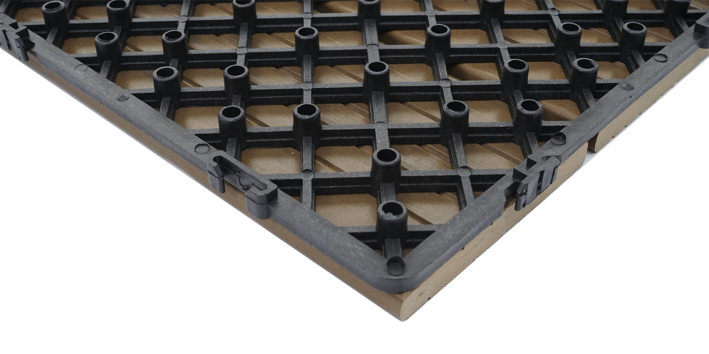 - Dankzij het praktische plug-in systeem kunnen deze terrastegels in elke positie worden gelegd. Uw ontwerpideeën kennen geen grenzen. Weer- en uv-bestendig, warmte- en koude-isolerend - deze vloerbedekking is een absolute allrounder!