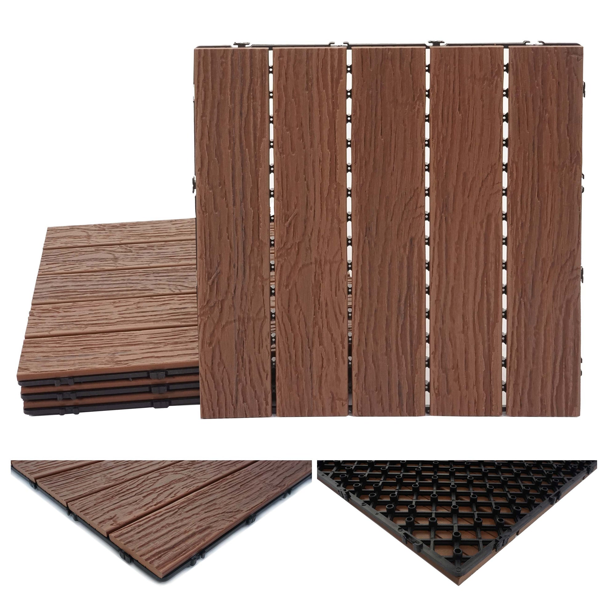 Cosmo Casa - WPC Vloertegel - Houtlook Balkon Terras - 3D Structuur Lineair - Donkerbruin - 4x per 50x50cm = 1m²
