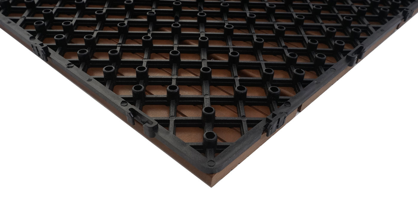 - Dankzij het praktische plug-in systeem kunnen deze terrastegels in elke positie worden gelegd. Uw ontwerpideeën kennen geen grenzen. Weer- en uv-bestendig, warmte- en koude-isolerend - deze vloerbedekking is een absolute allrounder!