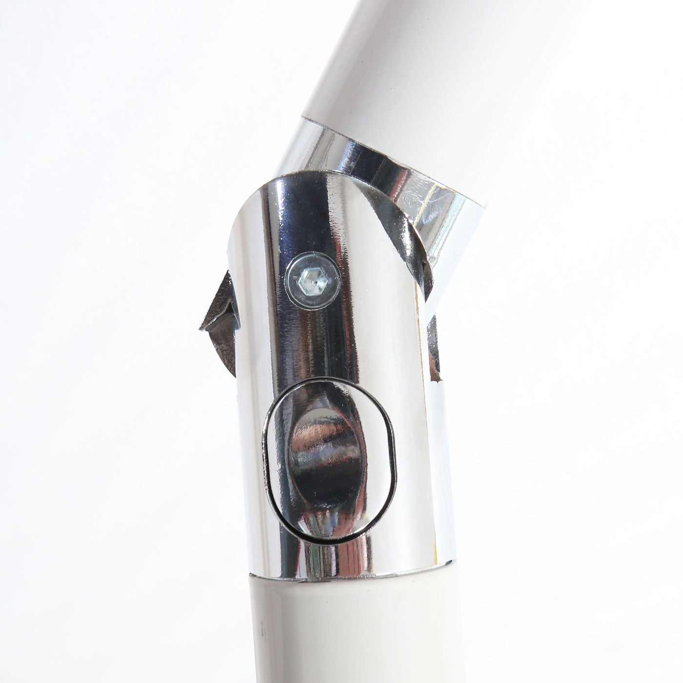 Let op: Als de bovenkant van de parasol gedraaid is en niet buigbaar is zoals afgebeeld, kunt u de stang van het bovenstuk zo verstellen dat de parasol naar wens kan worden gekanteld.