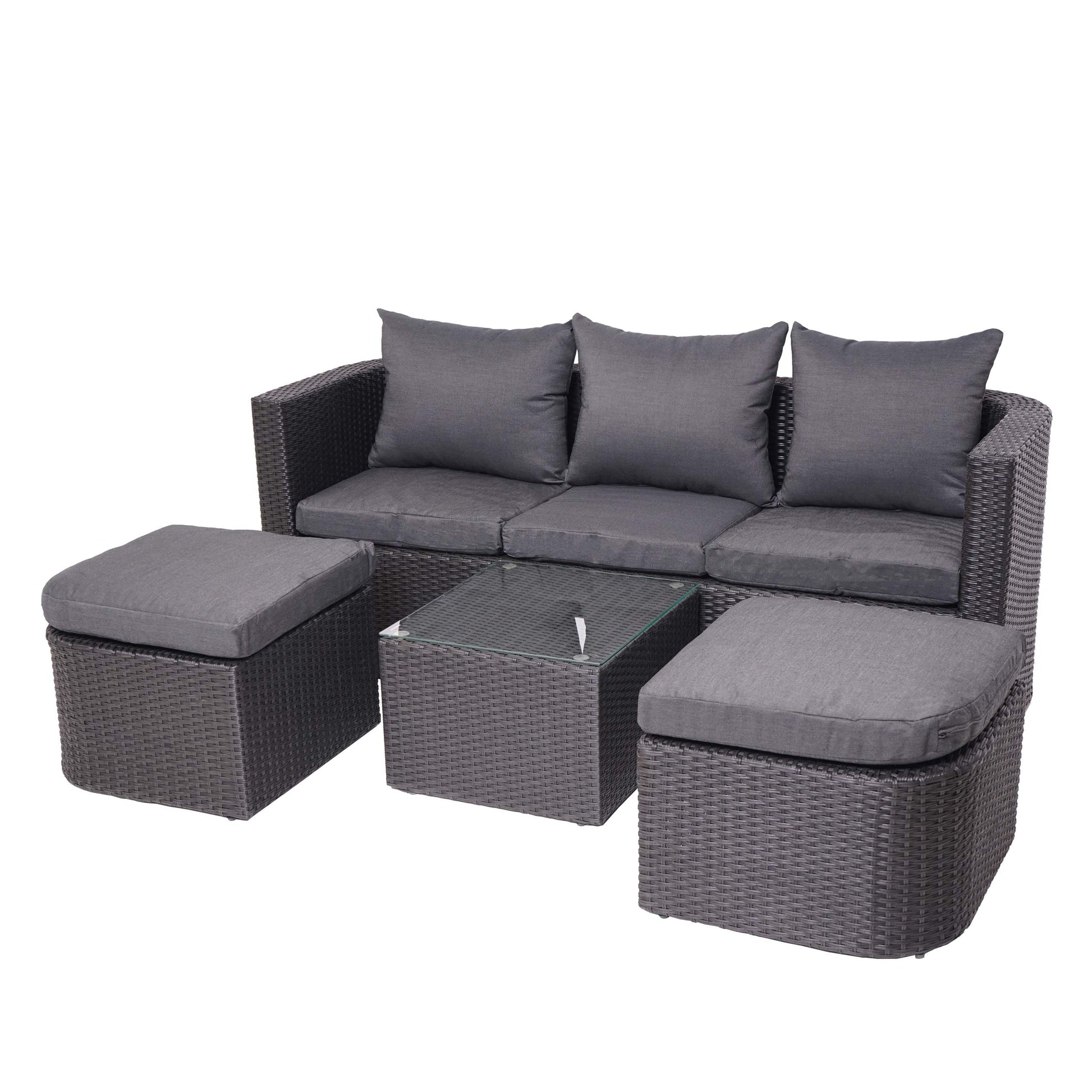 - Deze polyrotan set overtuigt door de diverse plaatsingsmogelijkheden en is bovendien ruimtebesparend op te bergen. Door het middengedeelte neer te klappen, kan deze set worden omgebouwd tot een zonne-eiland en laat niets te wensen over.