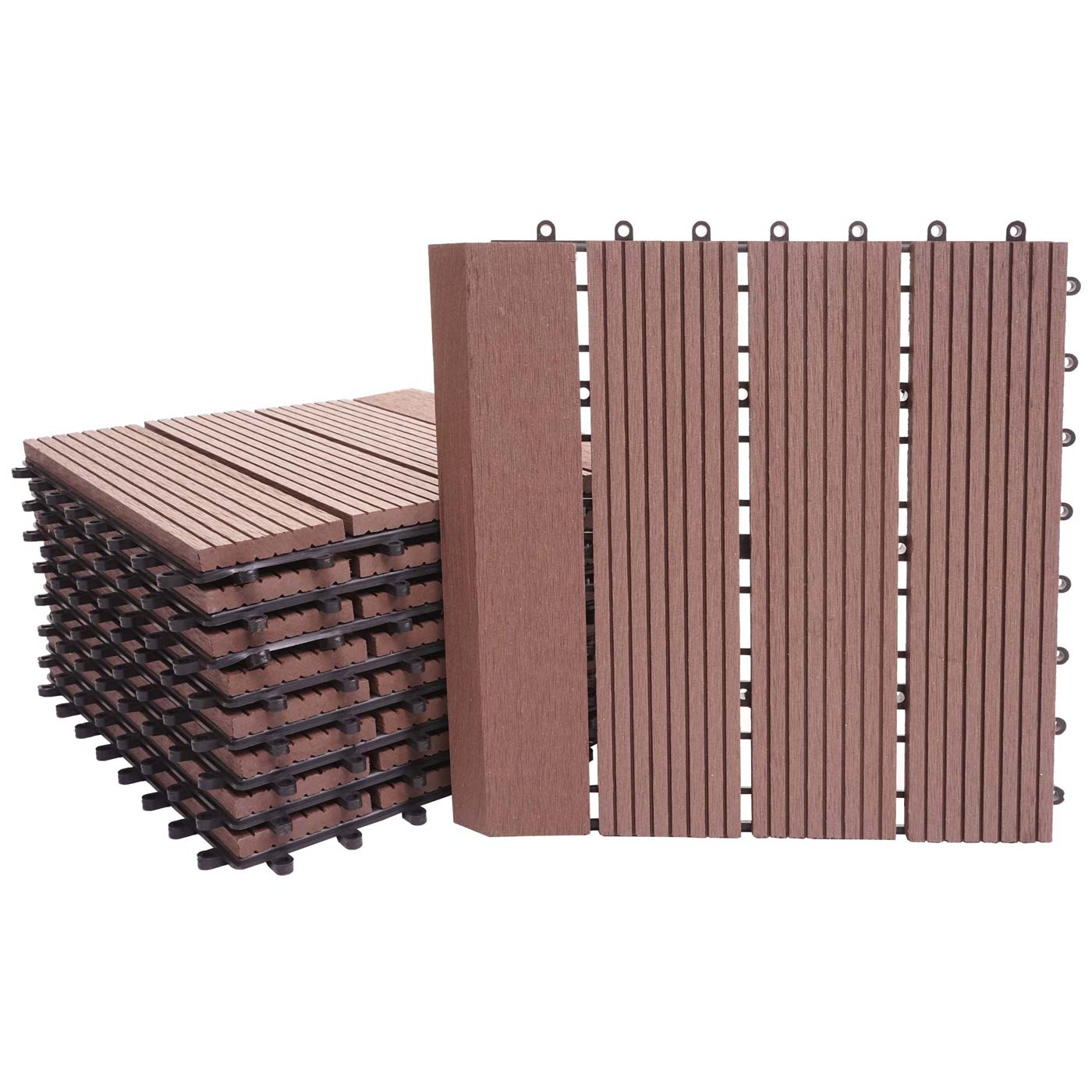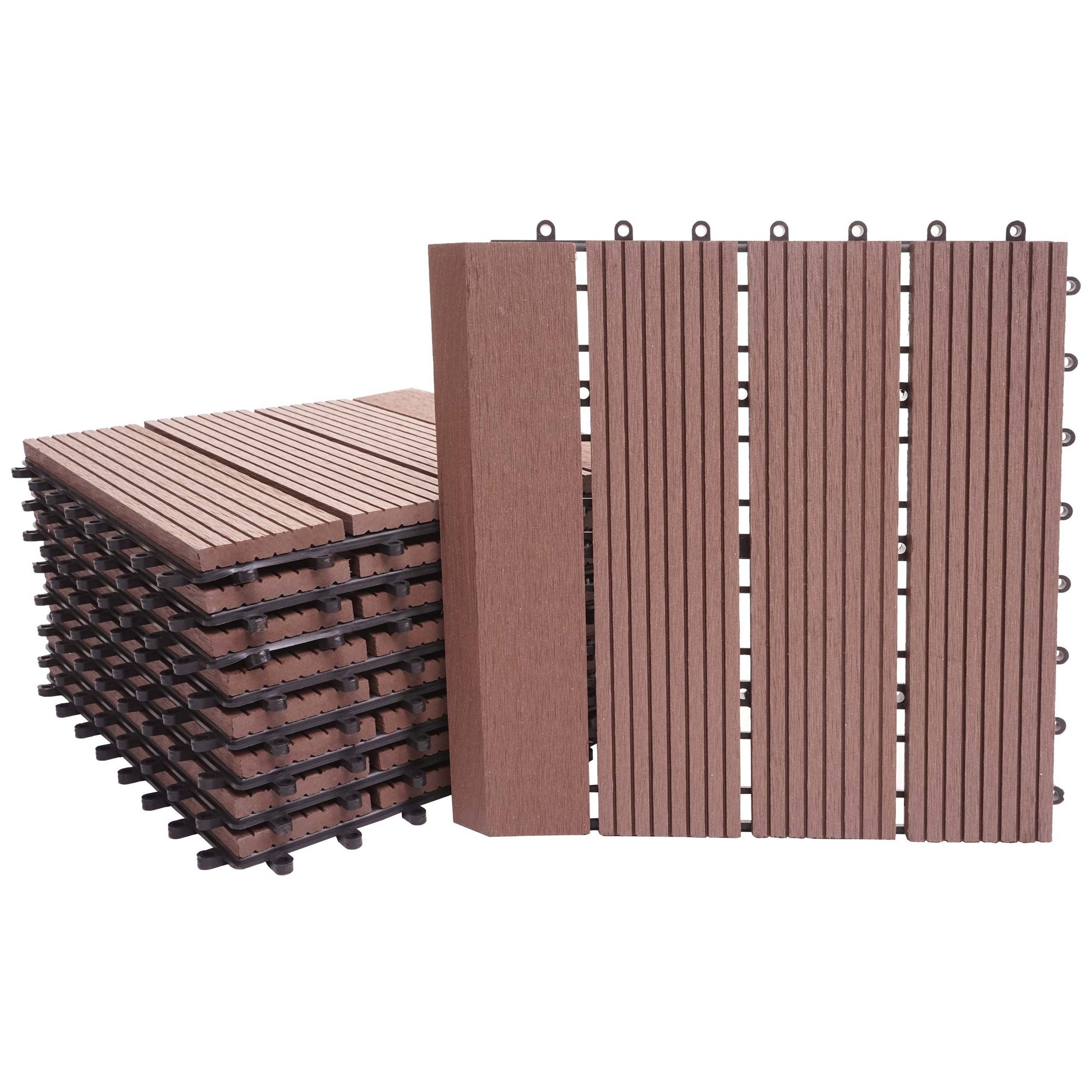 Cosmo Casa - WPC Vloertegel Rhone + Afwerking - Houtlook Balkon/Terras - WPC - Koffie Lineair Verticaal - 11×30×30 cm = 1 m² Premium | Standaard | €69,95