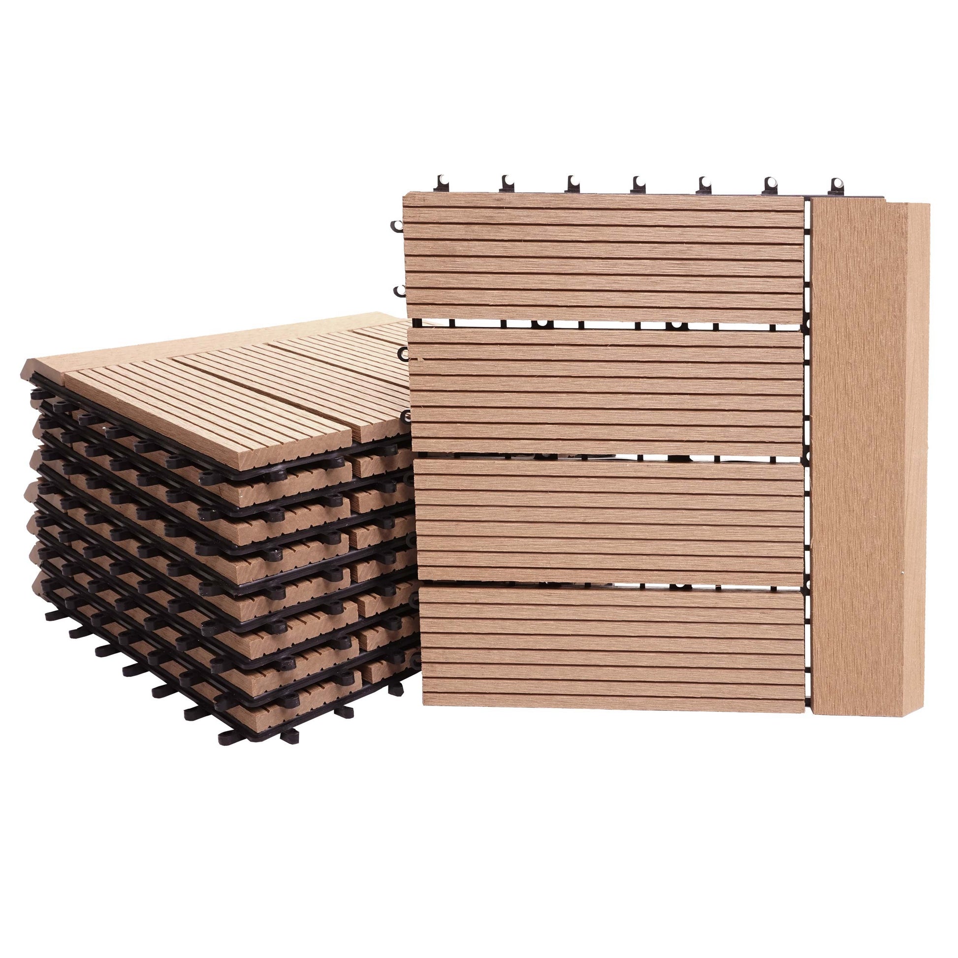 Cosmo Casa - WPC Vloertegel Rhone + Afwerking - Houtlook Balkon/Terras - WPC - Teak Lineair Horizontaal - 11×30×30 cm = 1 m² Premium | Standaard | €85,95