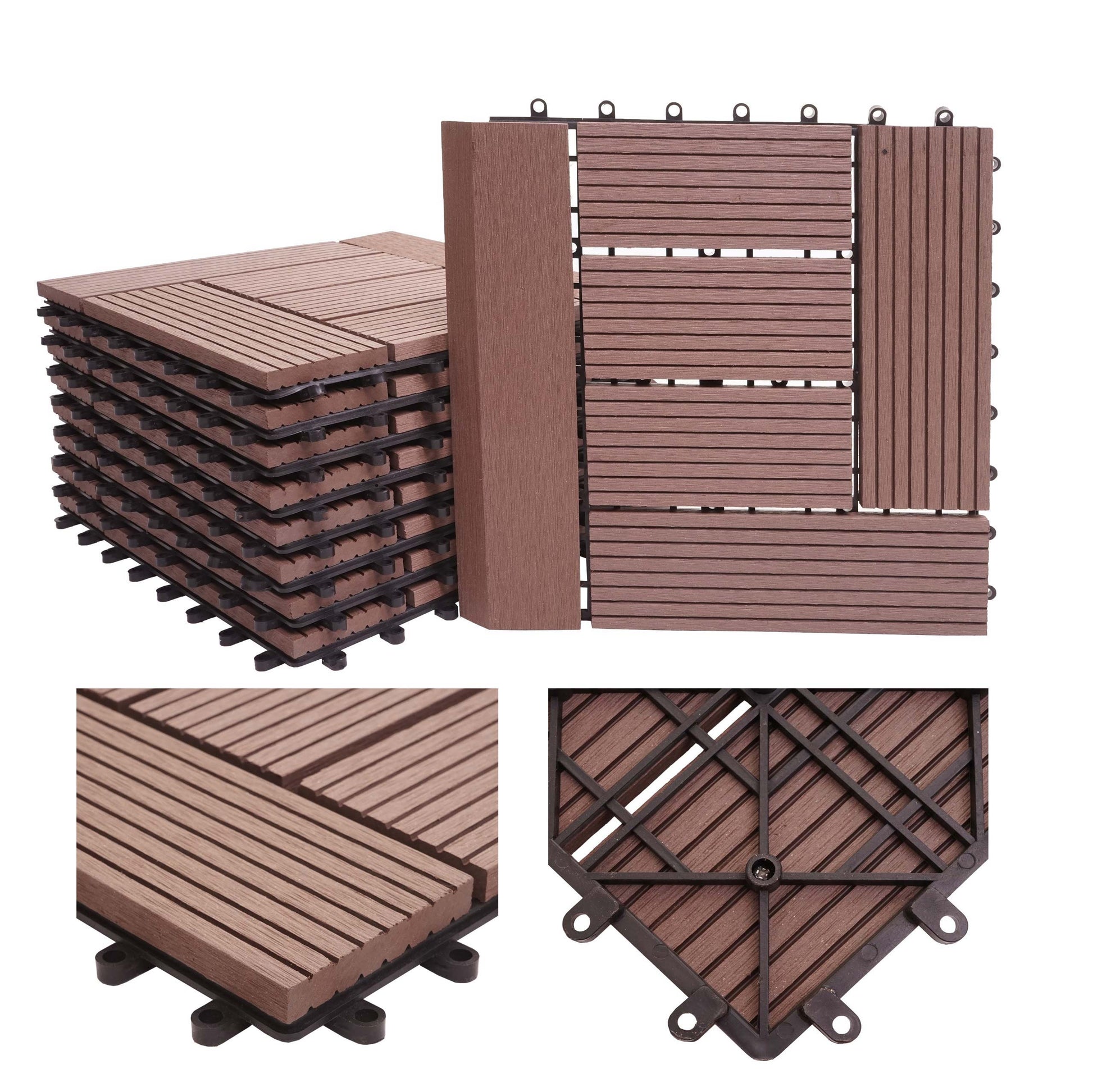 Cosmo Casa - WPC Vloertegel Rhone + Afwerking - Houtlook Balkon/Terras - WPC - Koffie Offset - 11×30×30 cm = 1 m² Premium | Standaard | €75,95