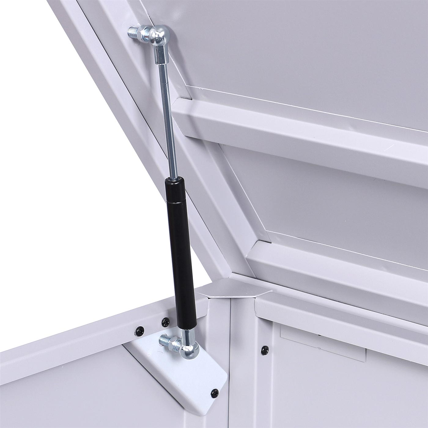 - Weerbestendig- BSCI sociale normen getest- Deksel met gasdrukveren- Verstelbare voeten- Afsluitbaar, incl. 2 sleutels- Roestvast staal - Maximaal draagvermogen: 350 kg - Deze ruime tuinkist biedt voldoende opbergruimte voor uw tuinmeubelkussens of andere spullen die snel moeten worden opgeborgen w...