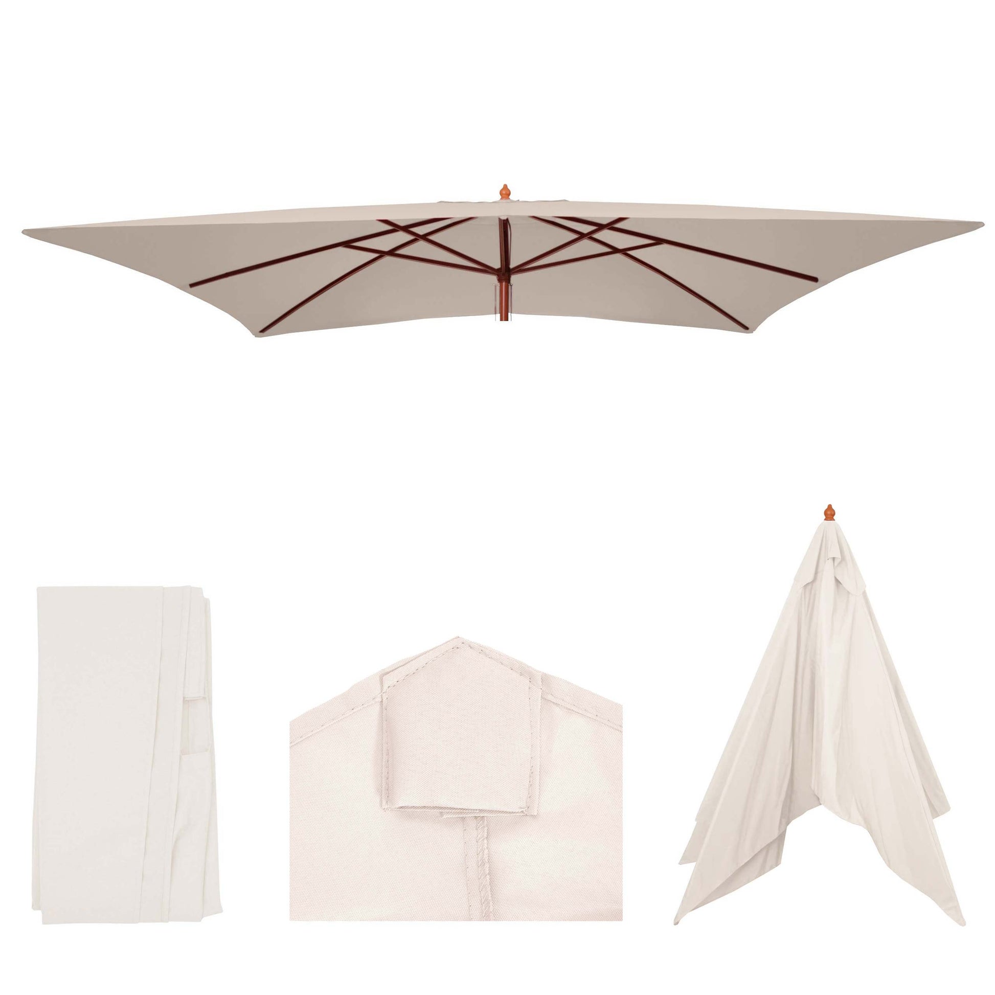 Cosmo Casa - Vervangingshoes voor Houten Parasol Florida 2x3 m - Polyester - Crèmewit | Standaard | €45,95
