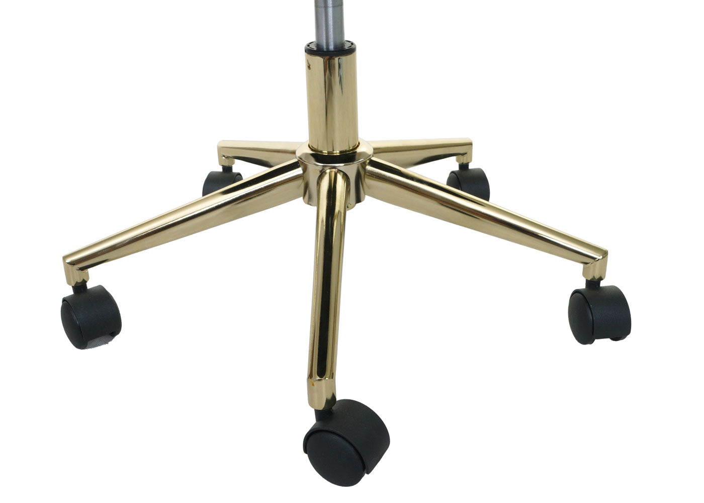 - Traploos in hoogte verstelbaar- 360° draaibaar- Comfortabele zitting- Met armleuningen- Afgeronde zitting en rugleuning- Met sierstiksels- Gouden onderstel- Maximaal draagvermogen: 120 kg- Deze stijlvolle draaistoel met een aantrekkelijk design is te combineren met vrijwel iedere interieurstijl en...