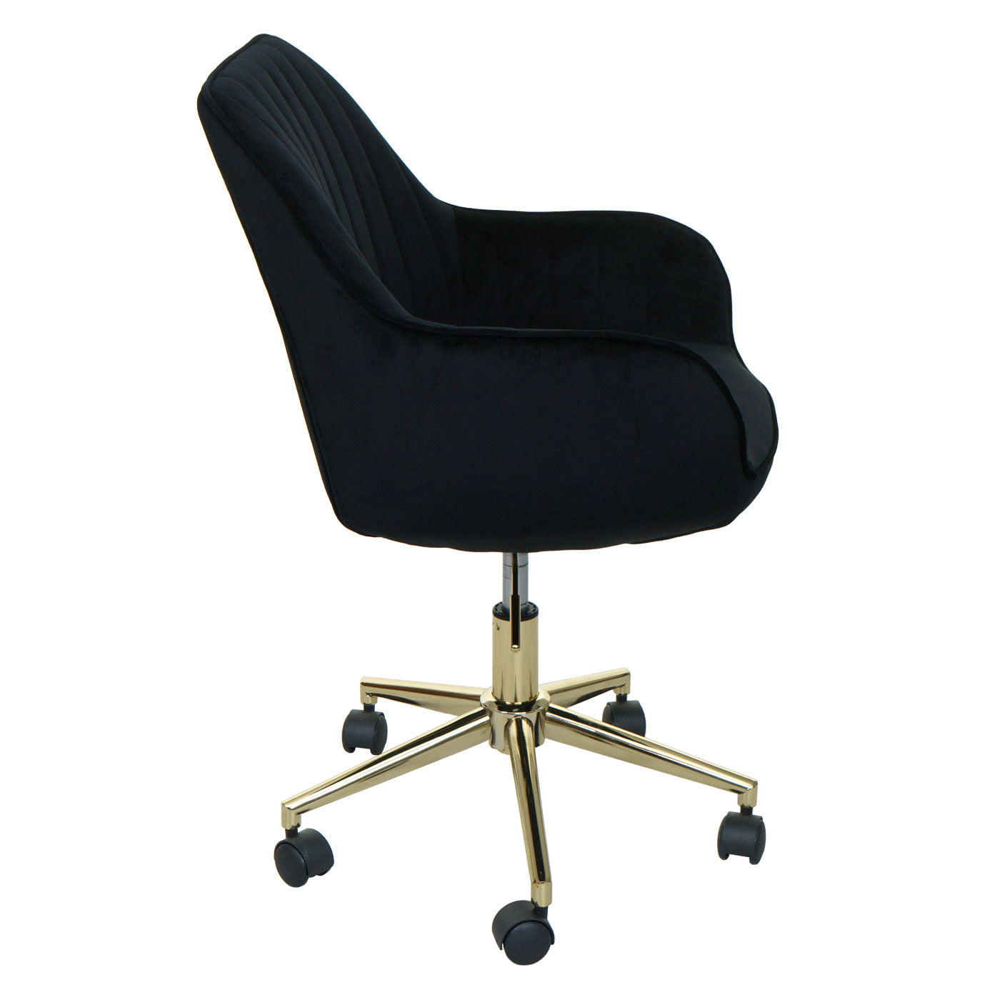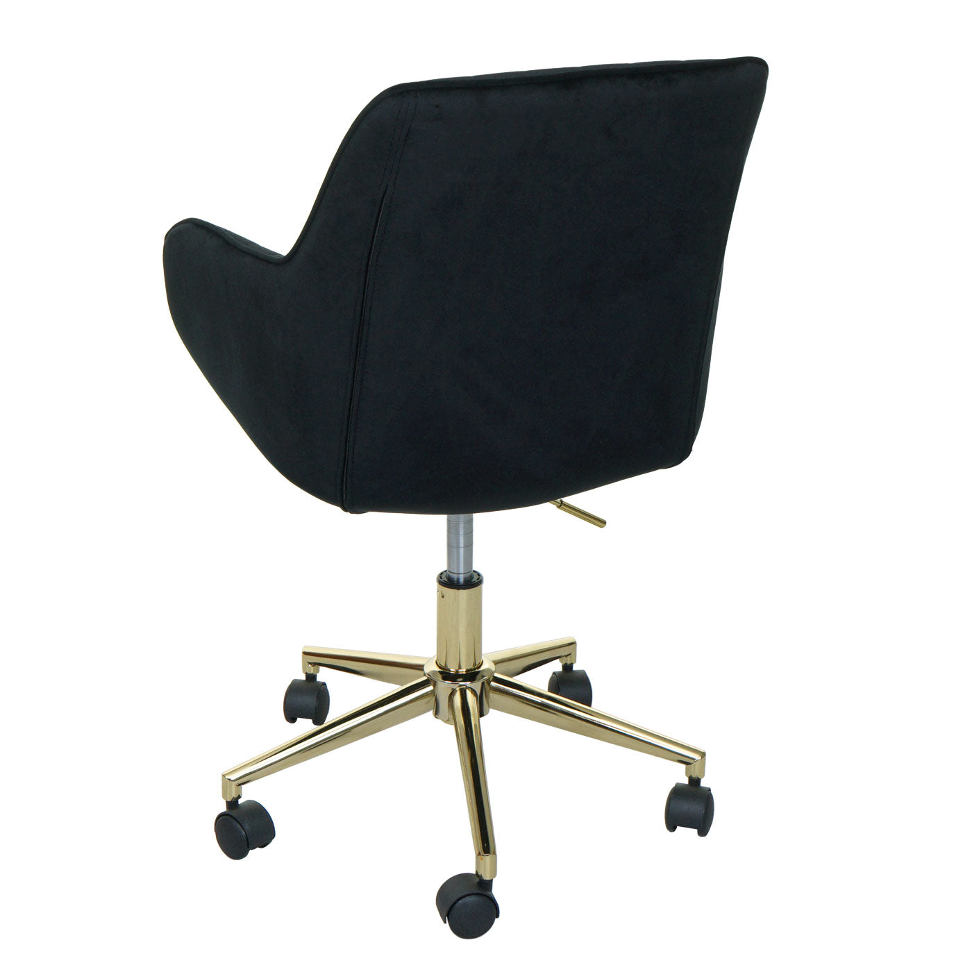 Cosmo Casa - Bureaustoel - Velvet draaistoel met armleuning - Fluweel en Metaal - Zwart - Gouden onderstel | Standaard | €145,95
