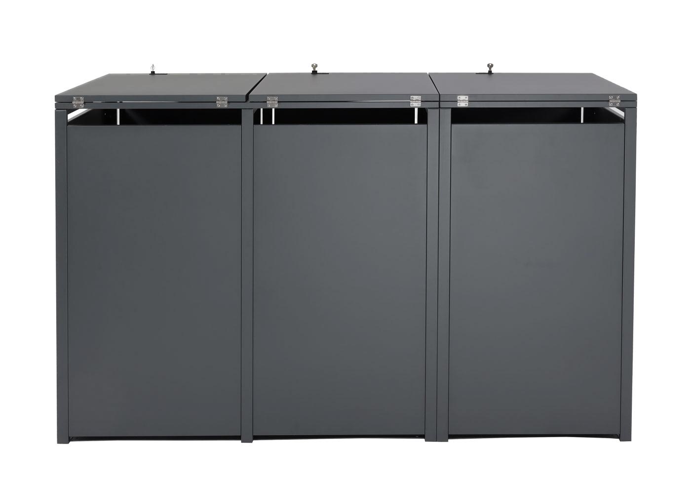 - Voor 3 vuilnisbakken met een inhoud van 80 tot 240 liter- BSCI sociale normen getest - Robuuster door hoger gewicht dan veel concurrenten- Materiaaldikte staal: 0,8 mm (en dus dikker dan sommige concurrenten)- Roest- en UV-bestendig- Uitbreidbaar met andere modellen uit de J82-serie- Deksel kan va...