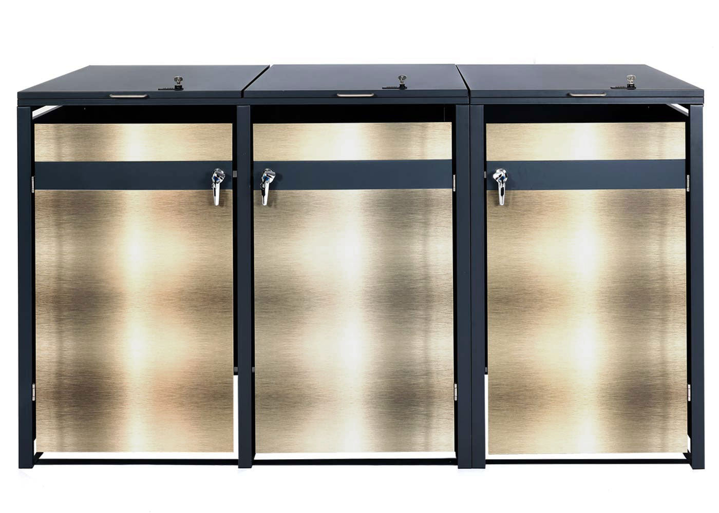 Cosmo Casa - 3-delige Vuilnisbakbekleding - Uitbreidbaar - Metaal - Antraciet-Goud