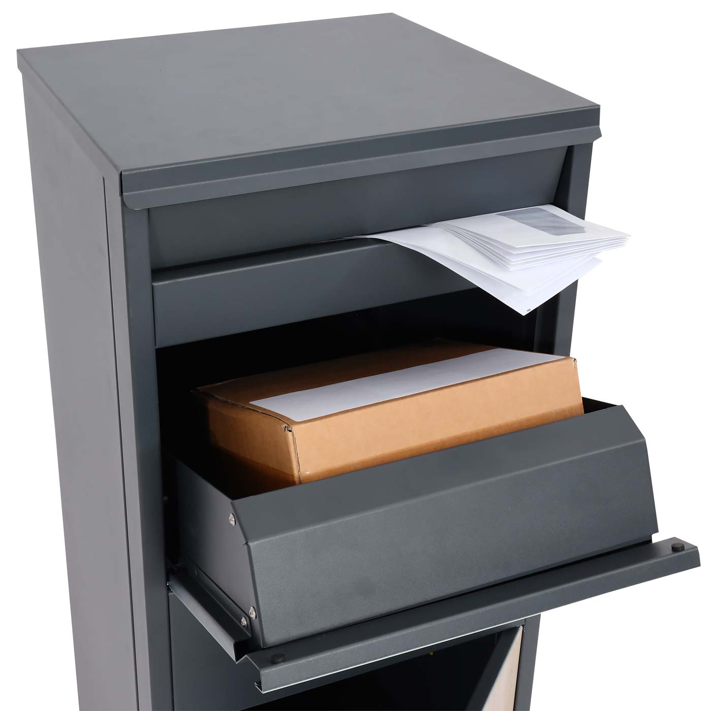 - Veilig drop-in systeem- Incl. twee sleutels - Geschikt voor commercieel gebruik- Grote drop-in voor kleine tot middelgrote pakketten - Met brievengleuf- Gemakkelijk post verwijderen- Kan aan de vloer worden bevestigd- Gewicht (ca.): 23 kg - Deze grote brievenbus wordt vooral gekenmerkt door zijn g...