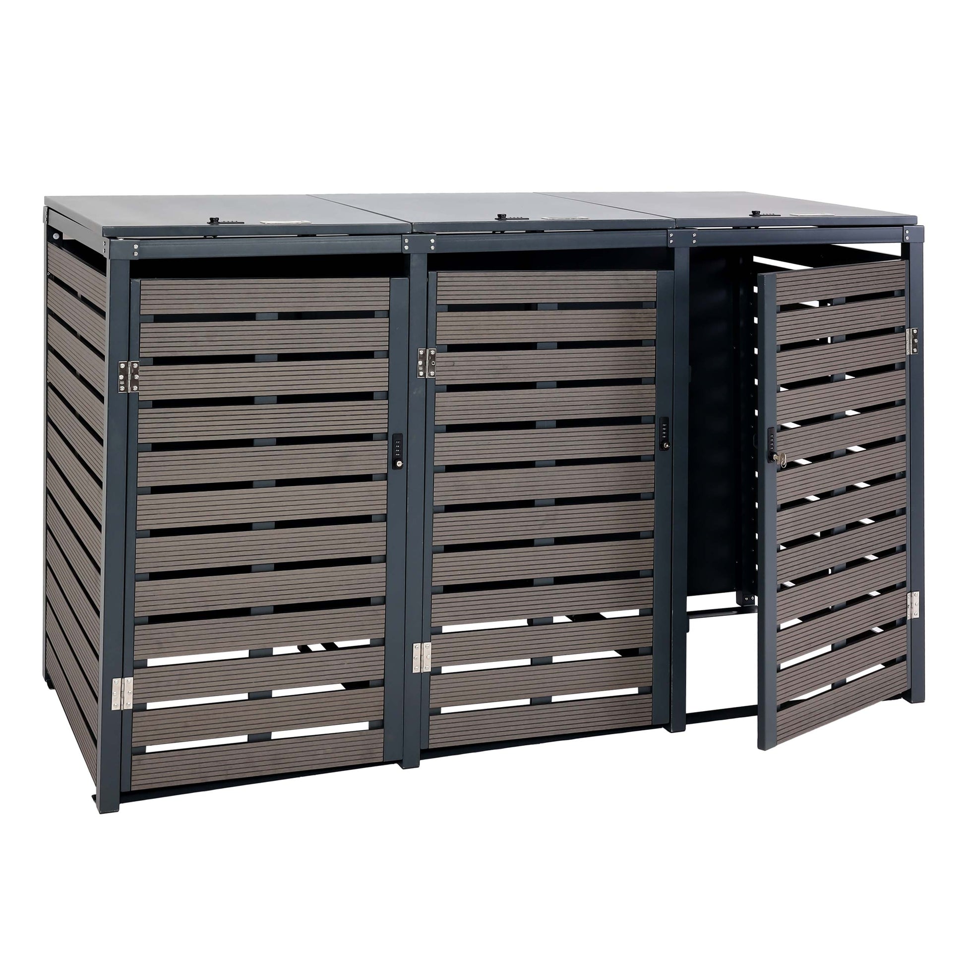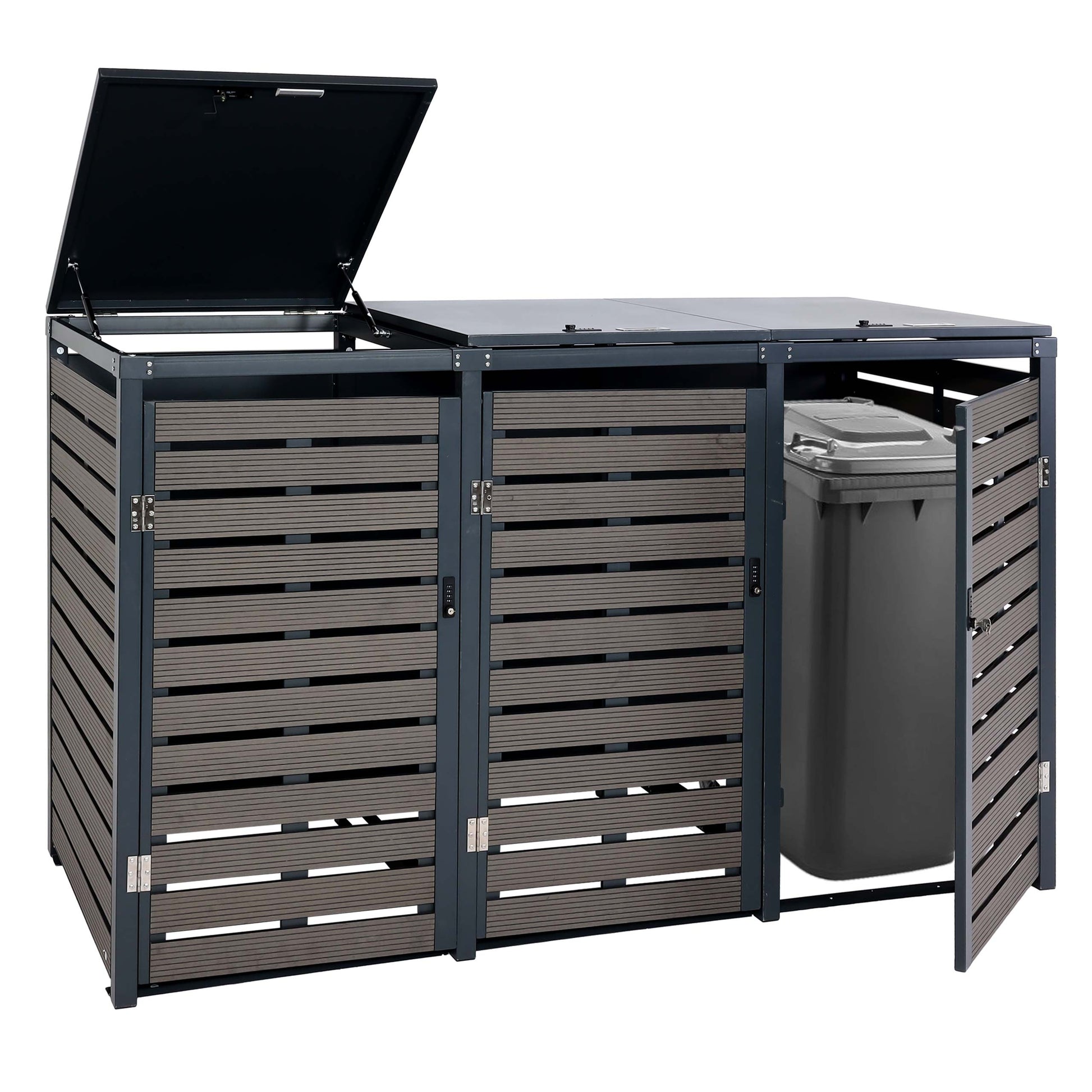 Cosmo Casa - Set van 3 Vuilnisbakbekleding met Deksel - WPC & Metaal - Antraciet - 119×205×84 cm / 109 kg | Standaard | €2.169,95
