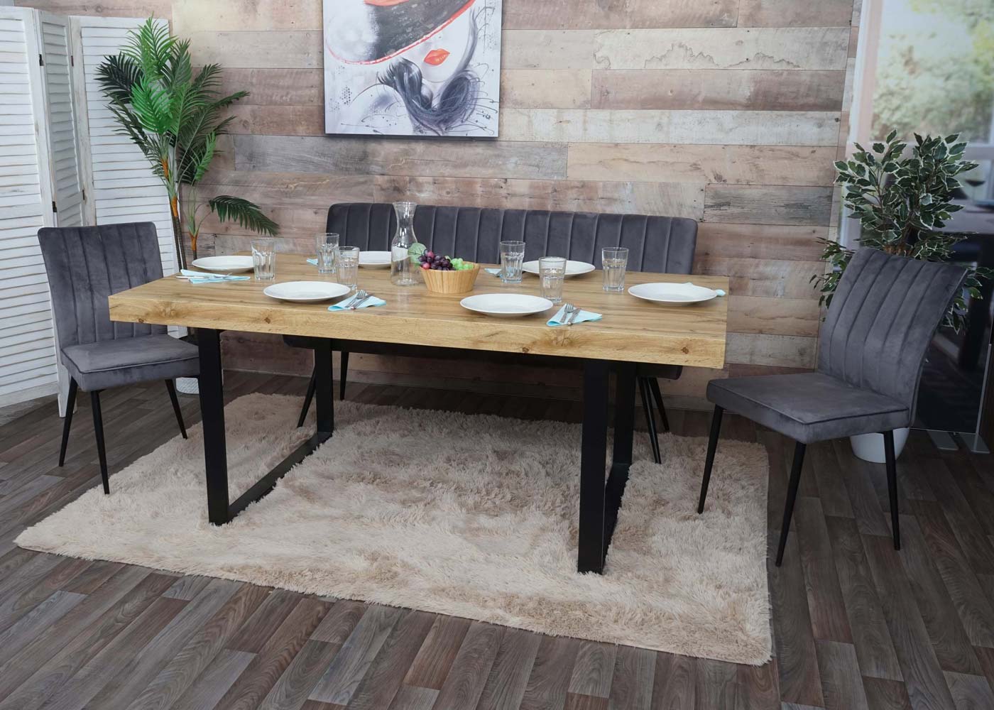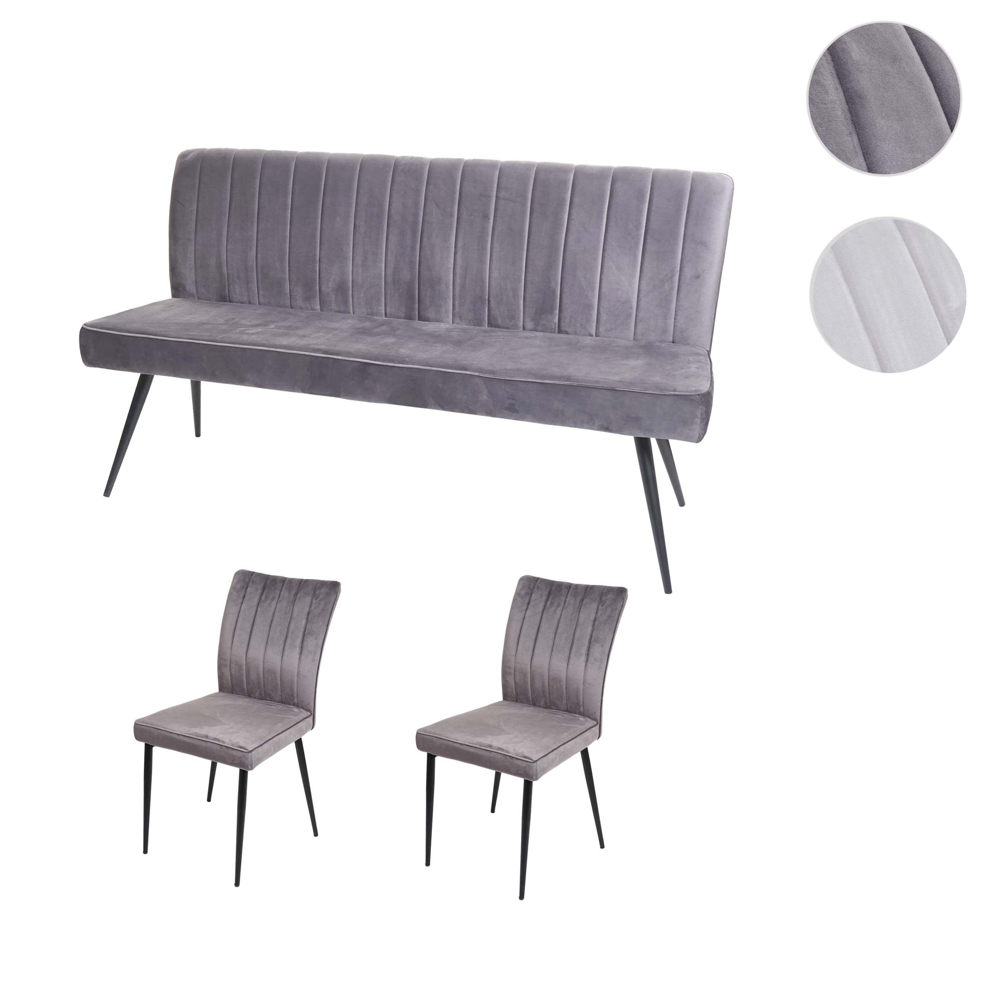 - Levering bevat 2x eetkamerstoelen en 1x 3-zitsbank- Comfortabele vorm- Inclusief vloerbeschermers- Ronde zitting en rugleuning met decoratieve stiksels- Klassieke stijl- Max. draagvermogen per stoel: 140 kg- Eenvoudig te monteren- Deze chique set van twee stoelen en een bank in een modern design z...
