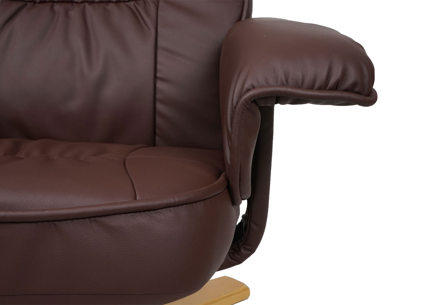 Cosmo Casa - Ontspanningsstoel - TV-stoel met Hocker - Kunstleer & Eucalyptushout - Roodbruin | Standaard | €269,95