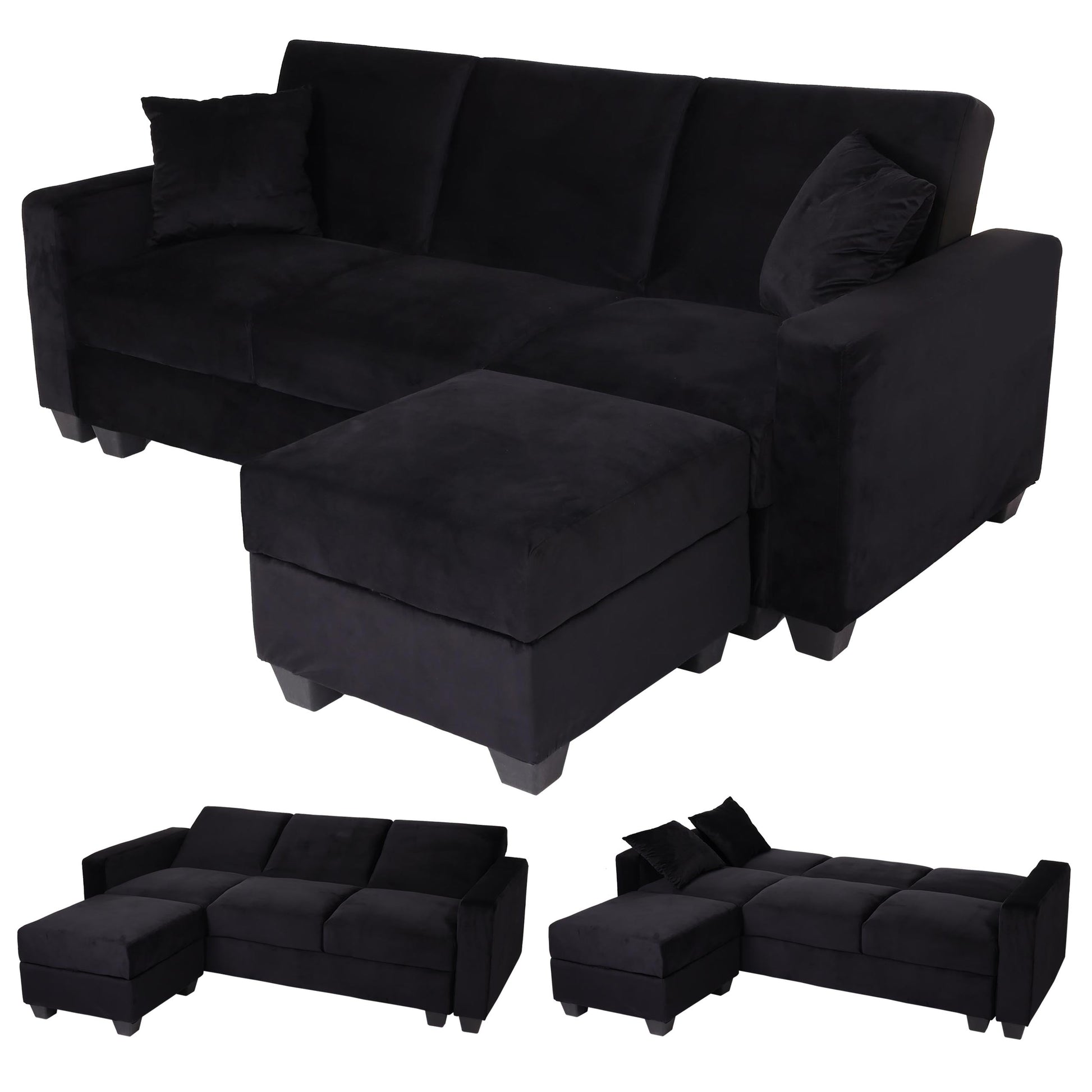 Cosmo Casa - Bank met Voetenbank - Slaapfunctie - Fluweel - Zwart - 217Ć145 cm | Standaard | ā¬1.759,95