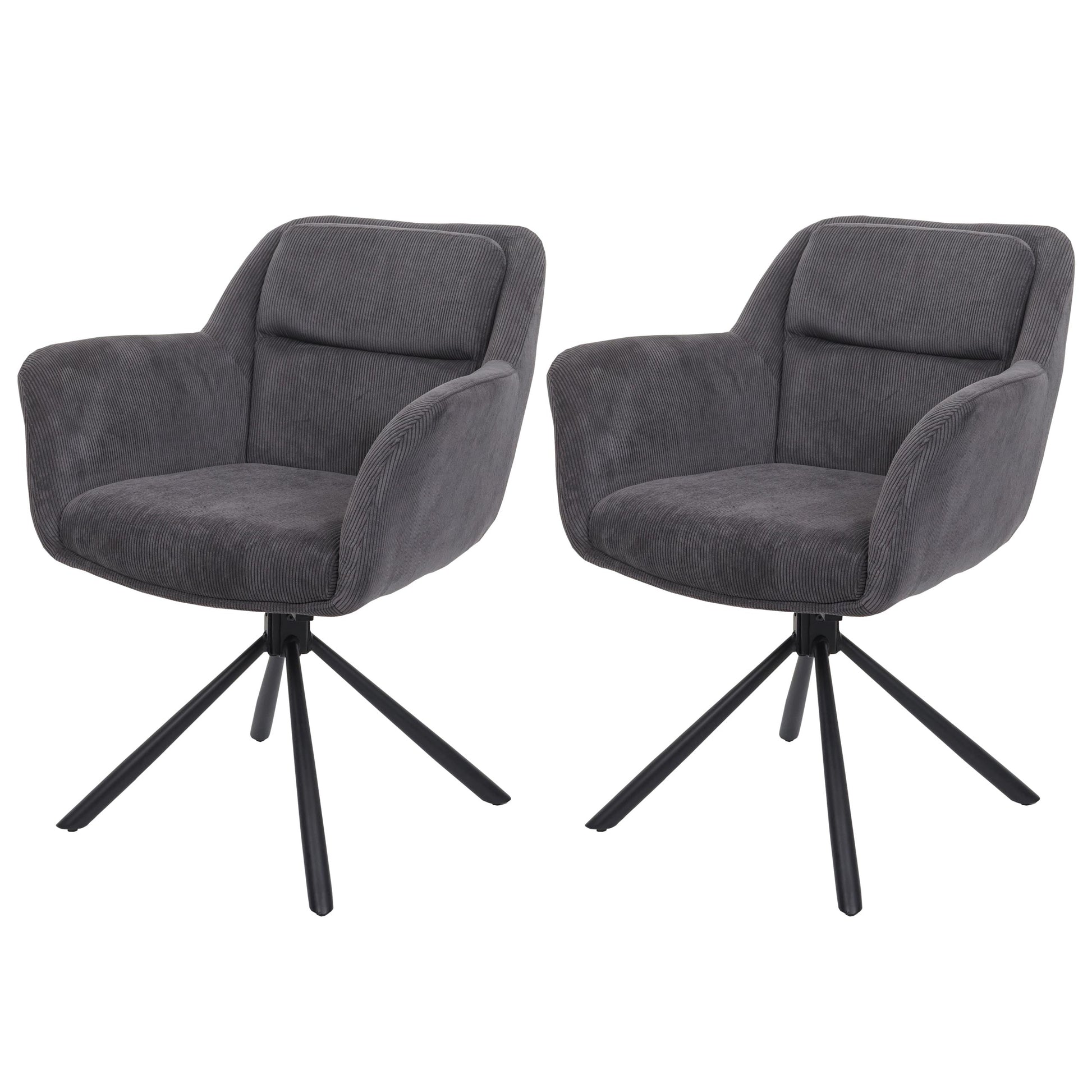 Cosmo Casa - Set van 2 Eetkamerstoelen - Swivel - Corduroy Grijs | Standaard | €669,95