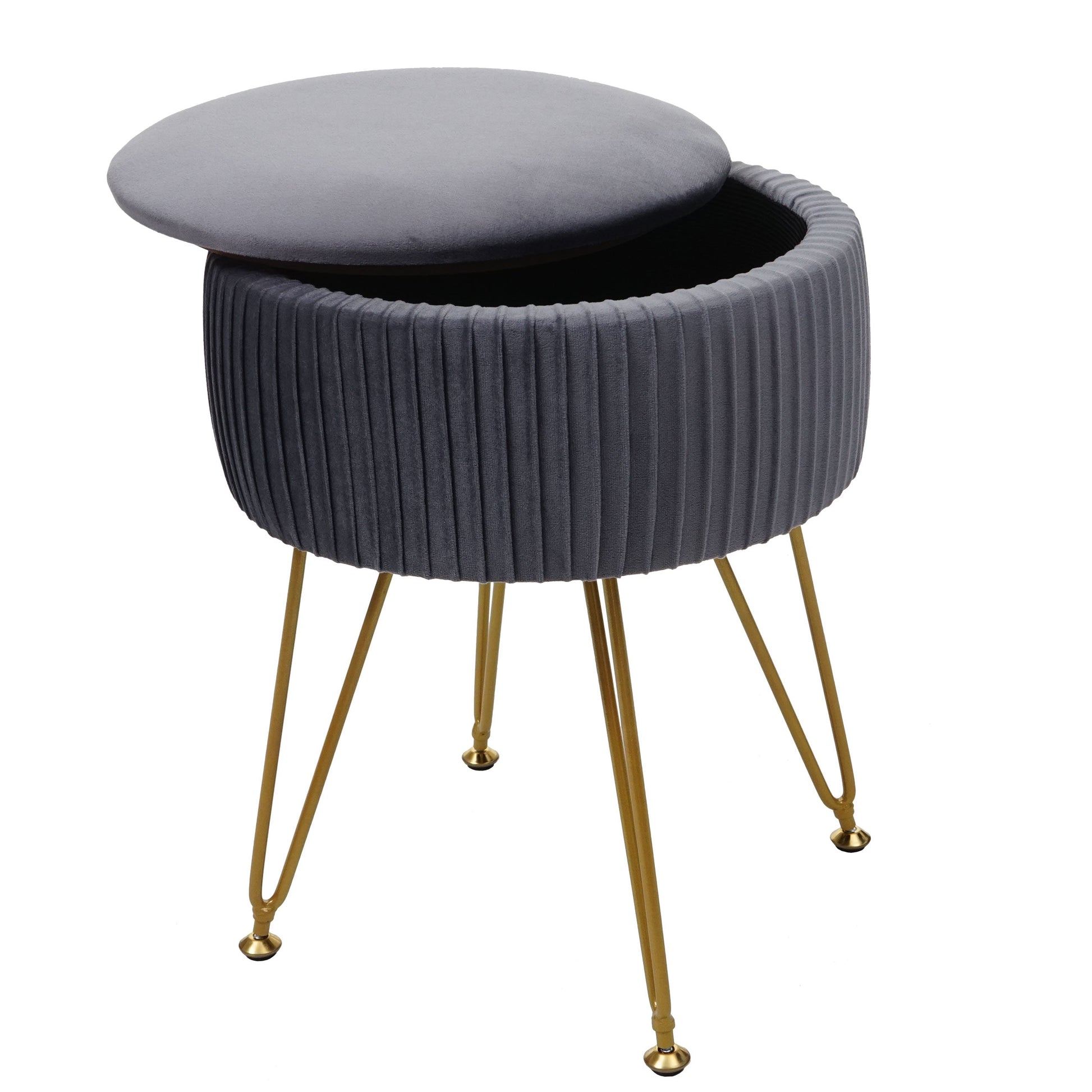 Cosmo Casa - Kruk met Opbergvak - 33 cm - Fluwelen Look & Metalen Frame - Lichtgrijs & Goud | Standaard | €56,95