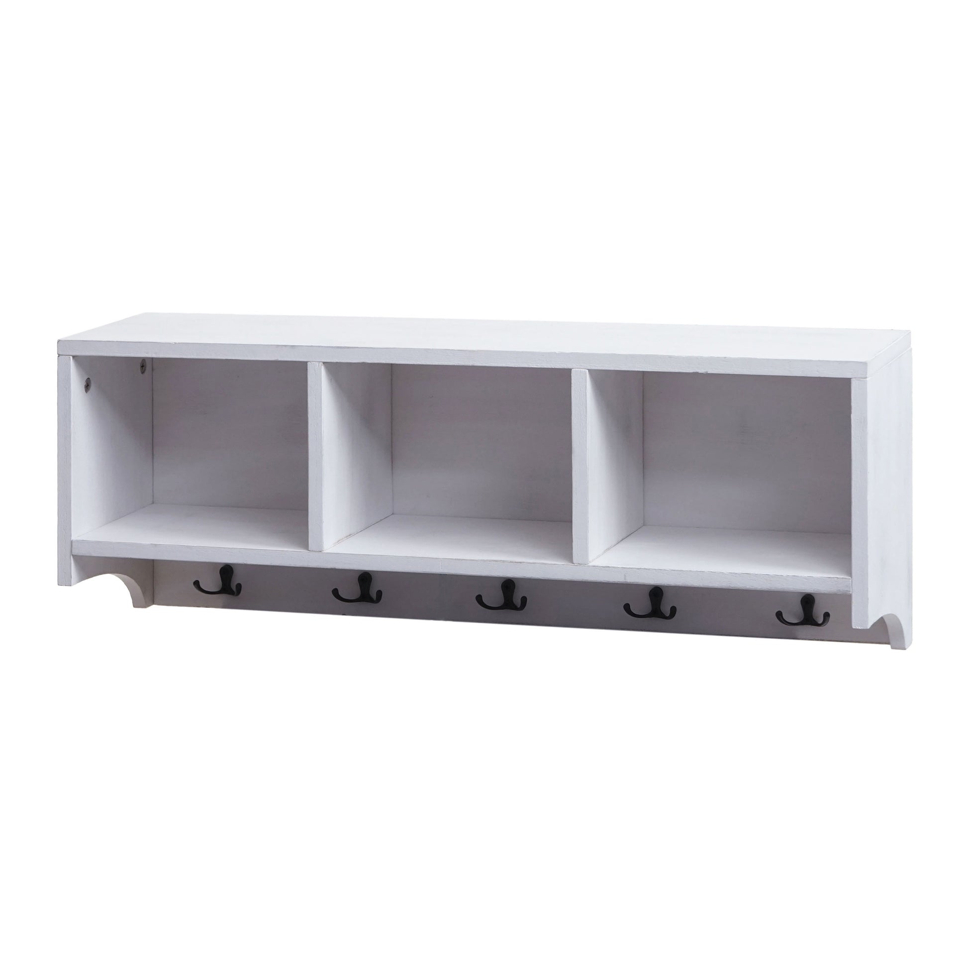 Cosmo Casa - Wandplank & Kapstokpaneel - 3 Opbergvakken & 5 Haken - Hout - Shabby White - 30×80×20 cm | Standaard | €65,95