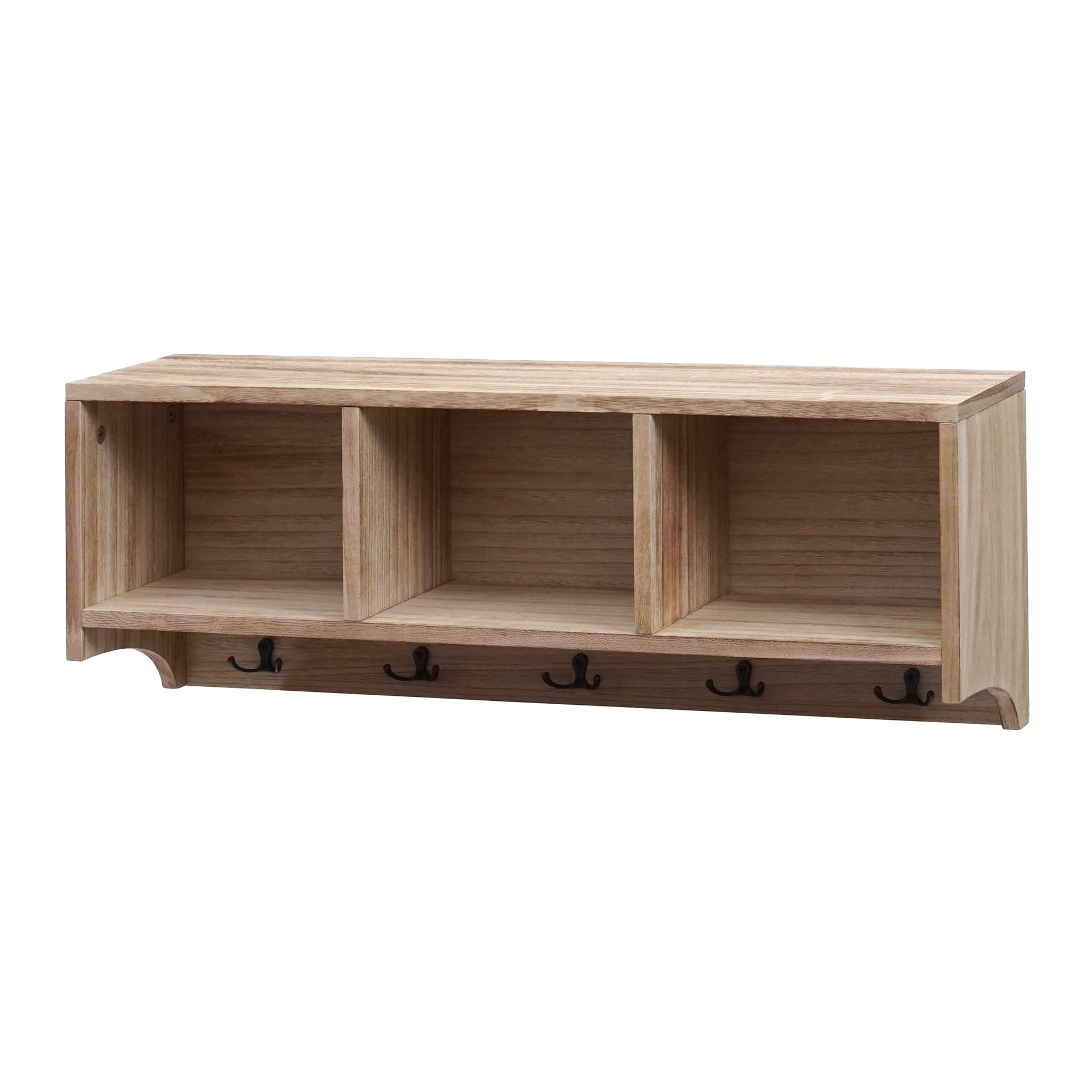 Cosmo Casa - Wandplank & Kapstokpaneel - 3 Opbergvakken & 5 Haken - Hout - Natural Brown - 30×80×20 cm | Standaard | €65,95