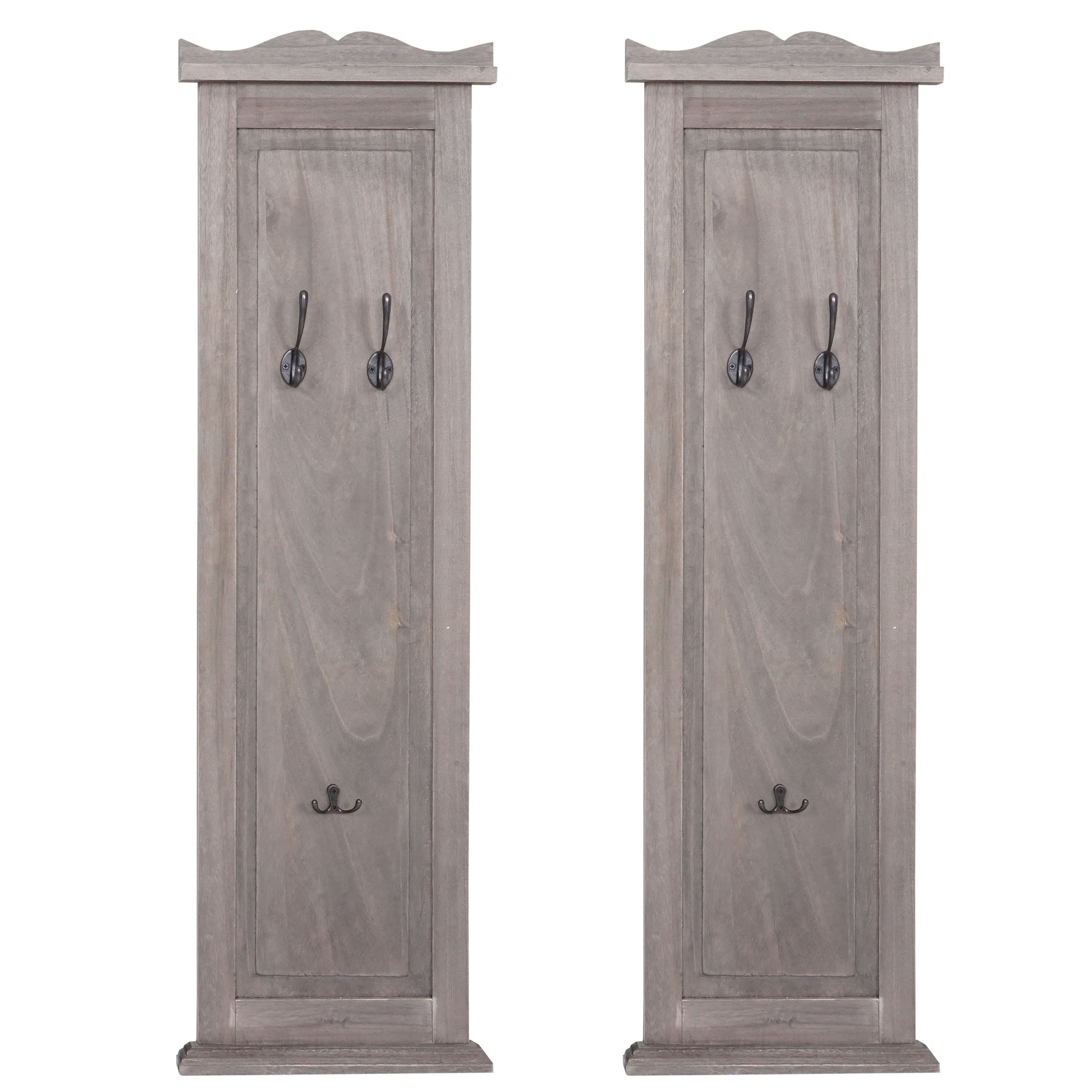 Cosmo Casa - Set van 2 Wandkapstokken - Paneel met Wandhaken - Hout - Grijsbruin - 109Ć28Ć4 cm - Shabby Look | Standaard | ā¬79,95