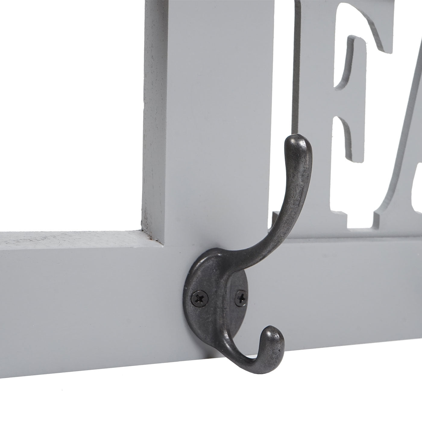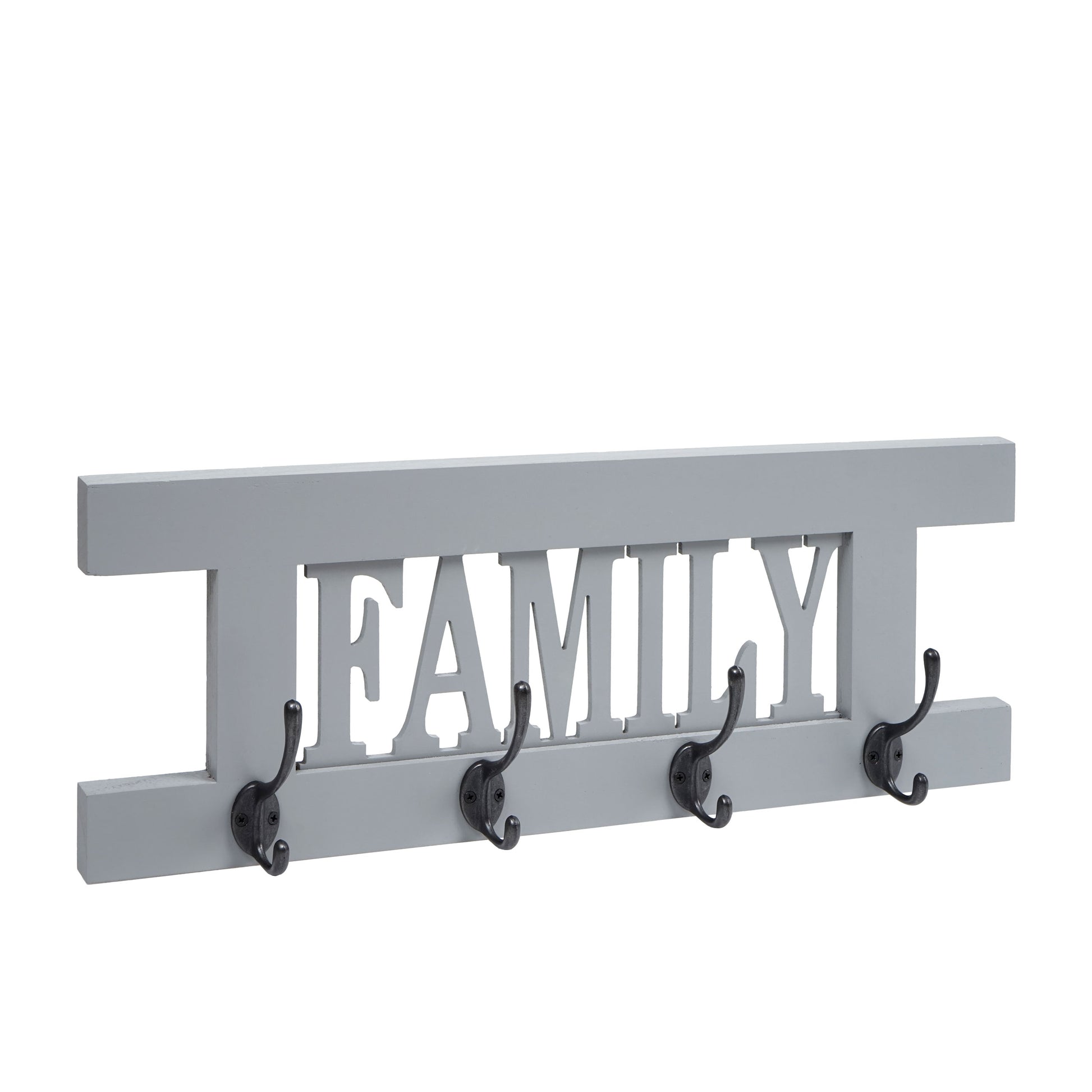 Cosmo Casa - Wandkapstok “Family” - Shabby Look Vintage Paneel - Grijsblauw - 60×21 cm | Standaard | €29,95