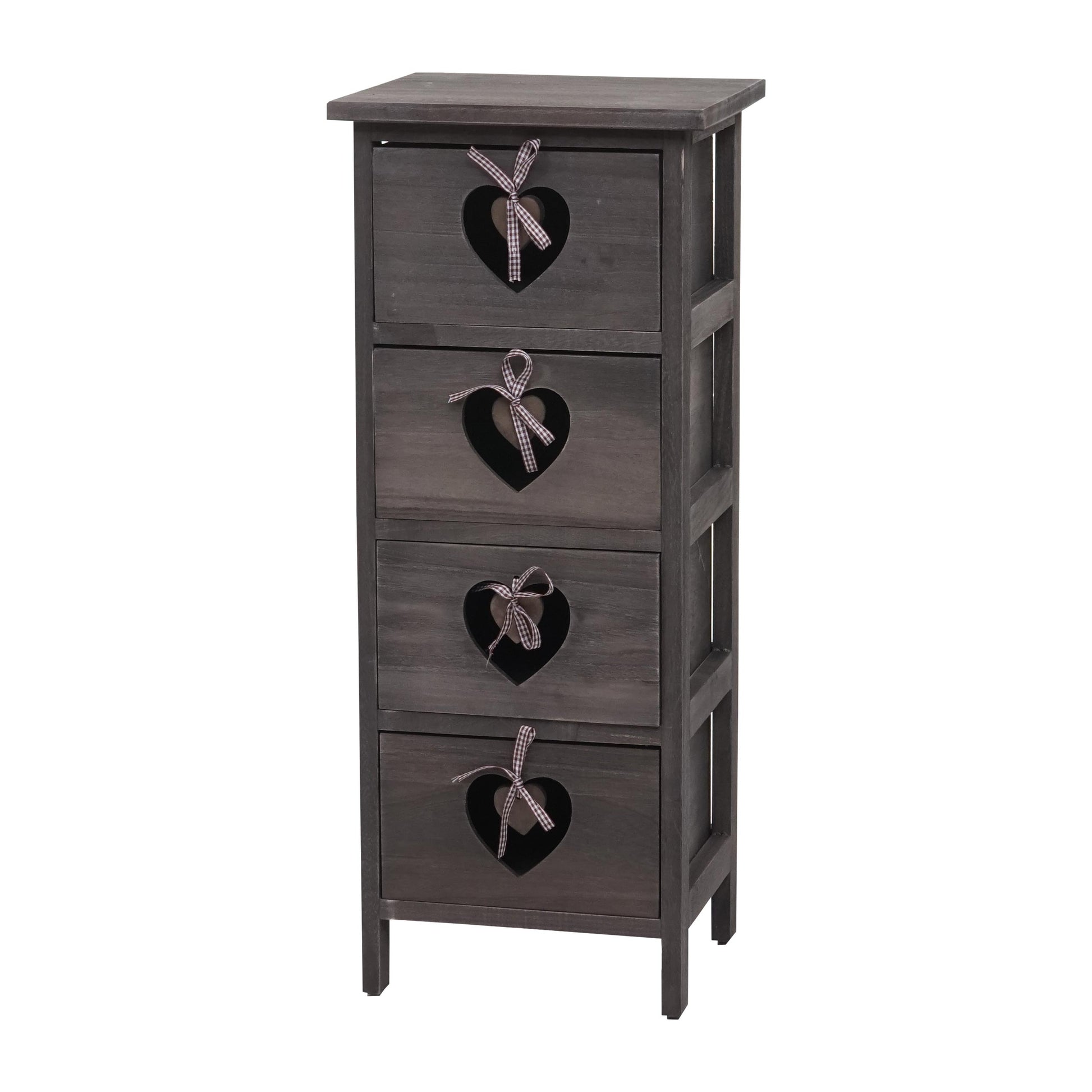 Cosmo Casa - Forli Ladekast - 4 Lades met Hartjes - Shabby Look - Vintage Grijsbruin | Standaard | ā¬65,95