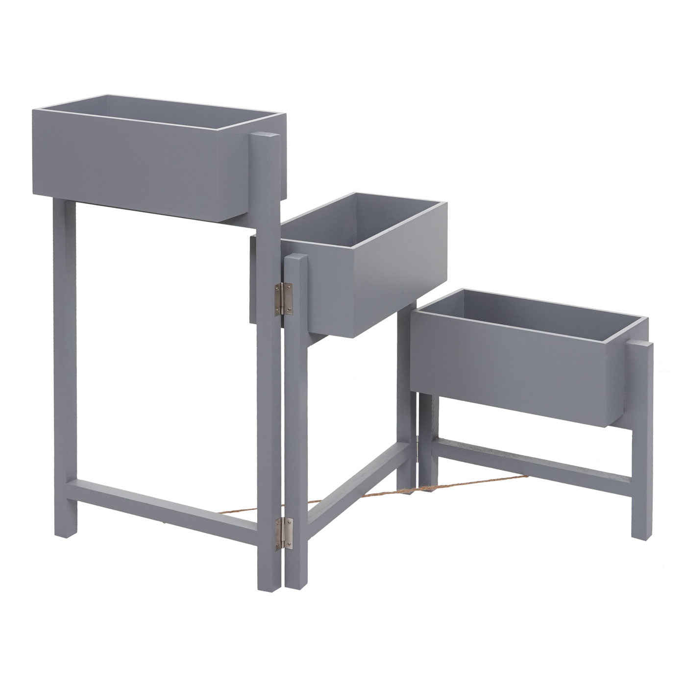 - 3 manden voor planten- Gemakkelijk op te bergen dankzij de opklapfunctie- Met vloerbeschermers op de poten- Individueel te openen- Decoratieve shabby look- Geen montage nodig- Gemaakt van massief paulowniahout - Dit chique bloemenrek is een echte blikvanger. Iedere hang- en potplant kan zich ontv...