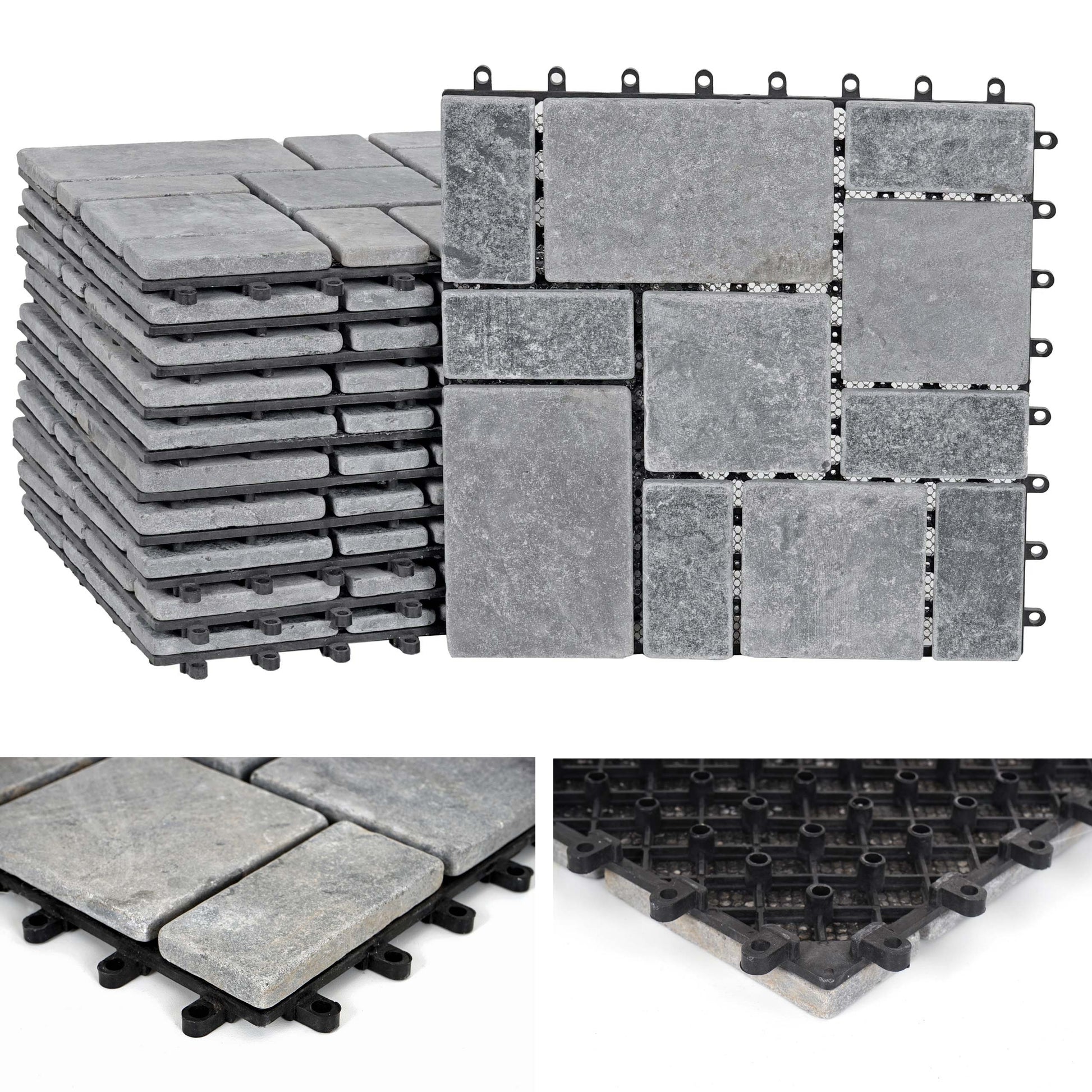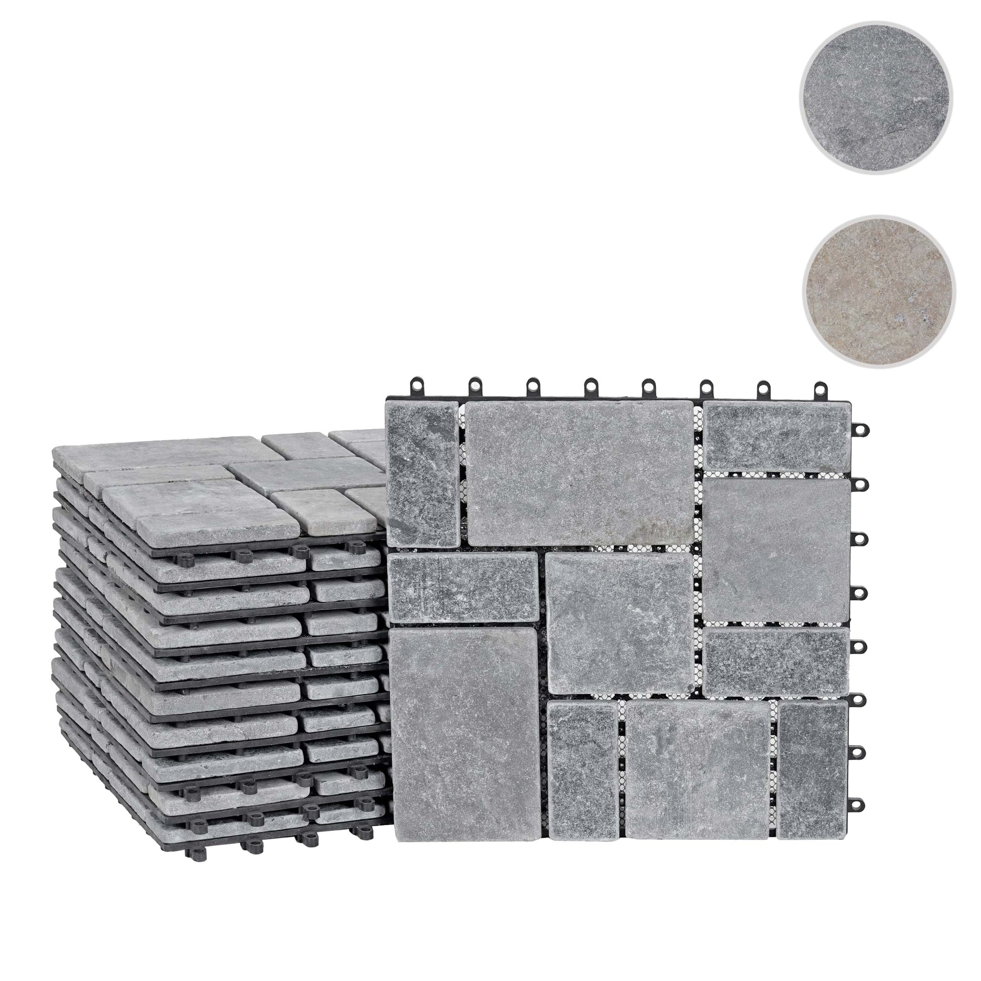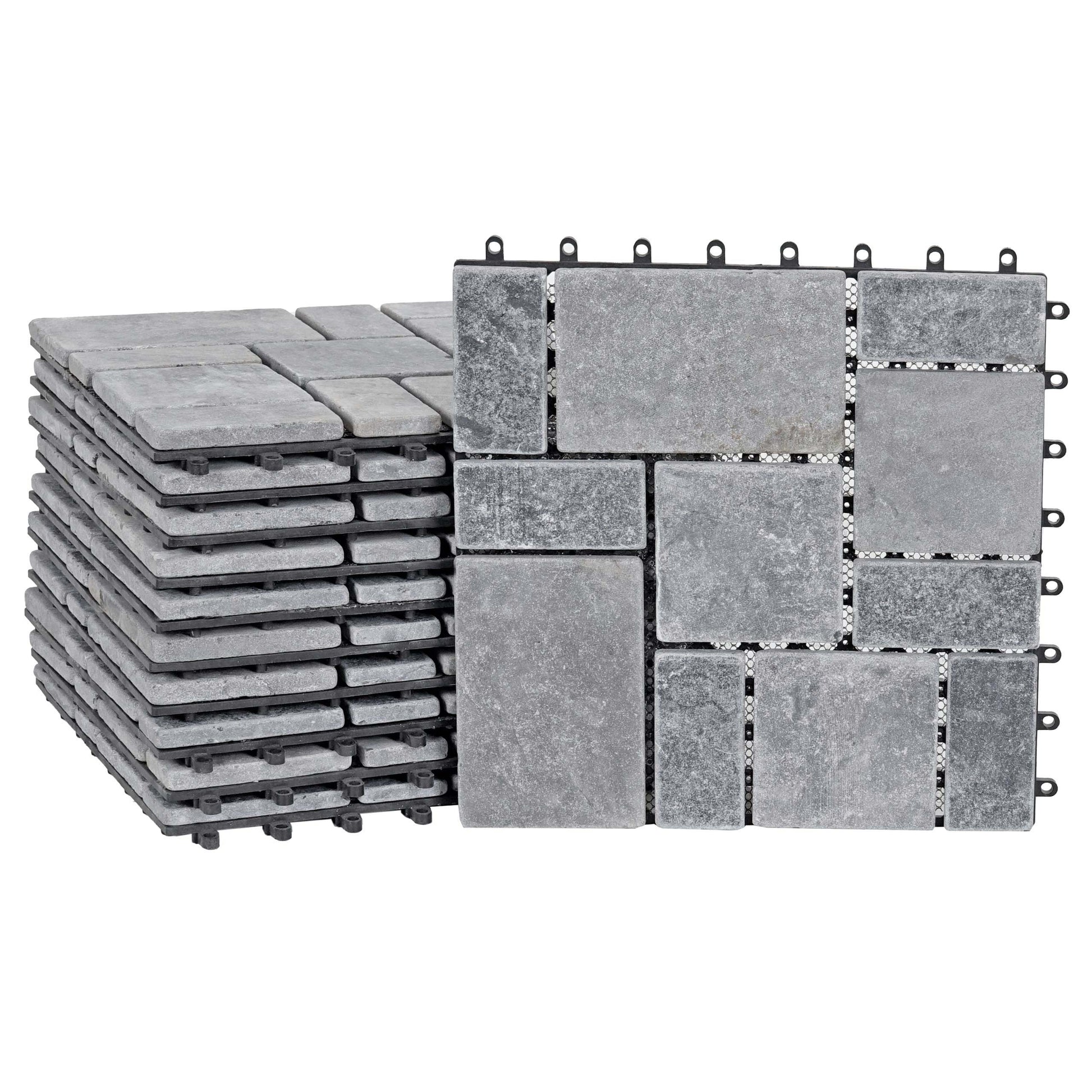 - Leveringsomvang: 11x steentegels elk 30x30cm- 11 steentegels = 1m�- Elke tegel is uniek- Materiaal: natuursteen- Kunststof onderconstructie- Voor buitengebruik- 8 aansluitpunten- Gemakkelijk in elkaar te steken - Met deze chique natuursteentegels kunt u een heel bijzondere sfeer creëren voor uw...