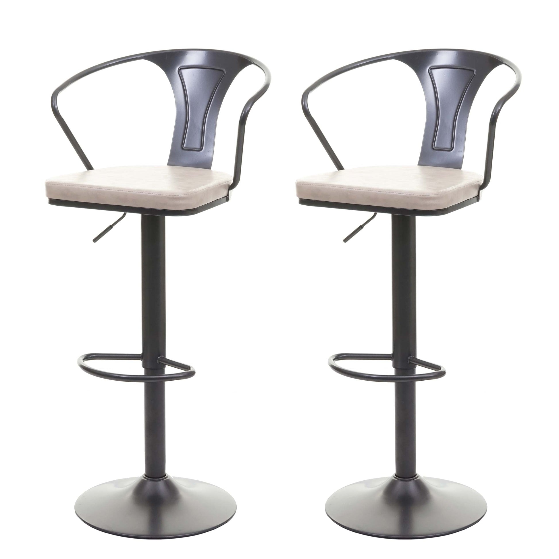 Cosmo Casa - Set van 2 Barkrukken - Verstelbaar - Metaal & Textiel - Zwart-Crème | Standaard | €189,95