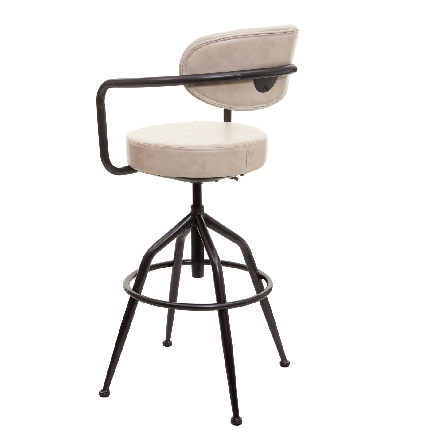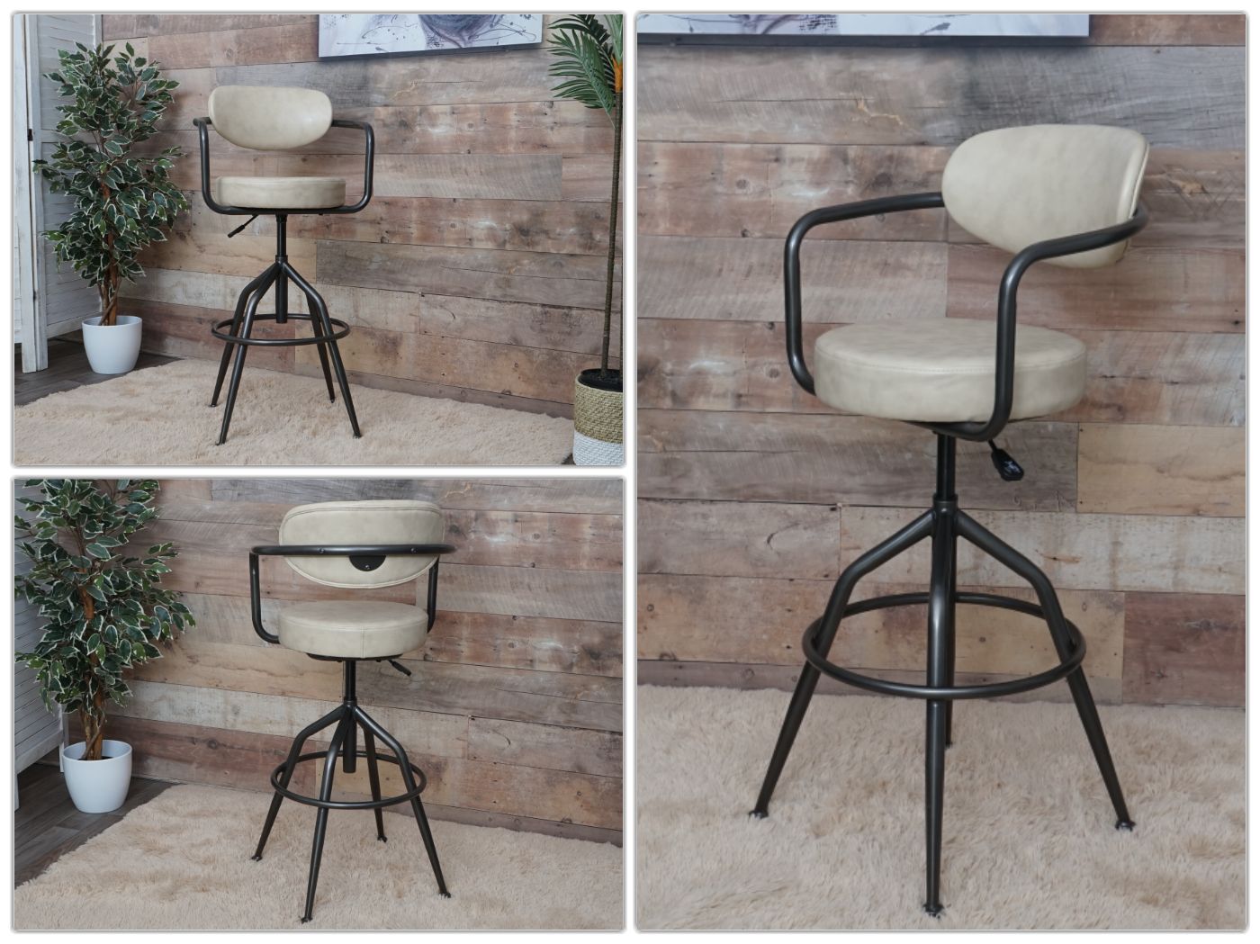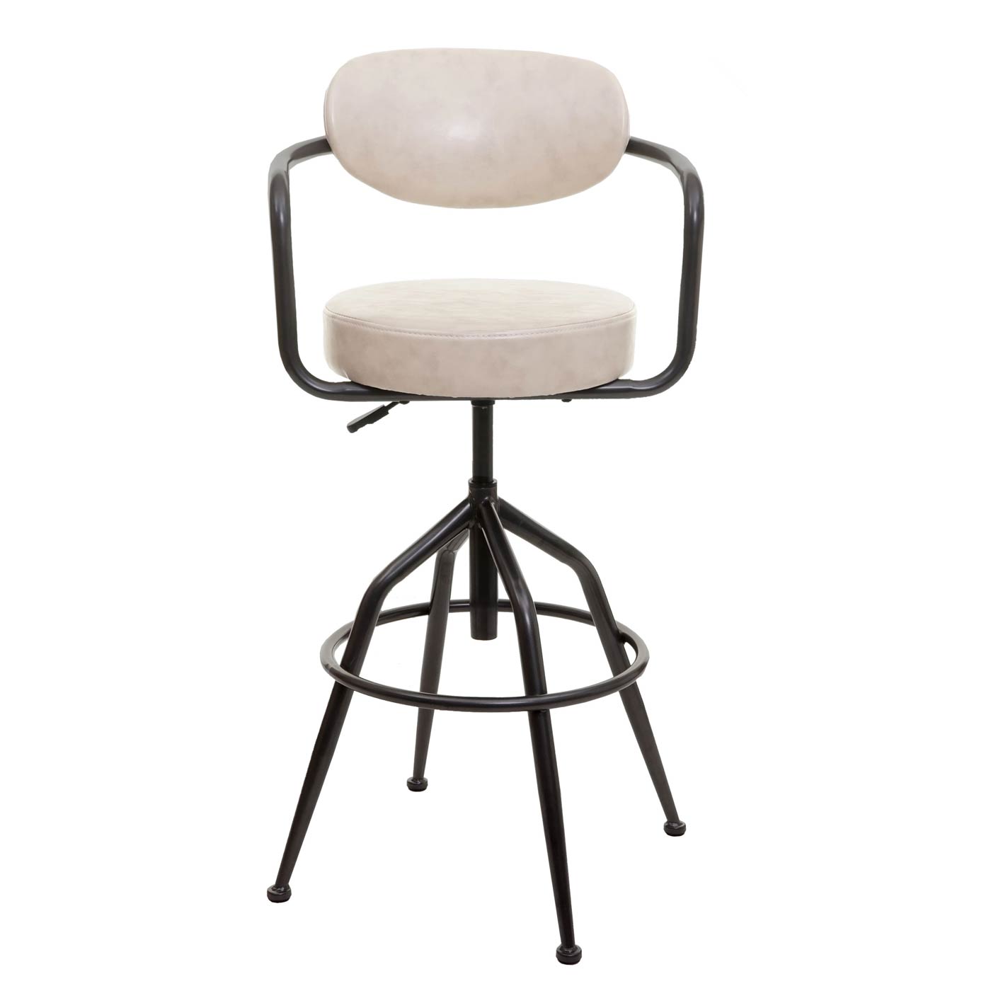 - Traploos in hoogte verstelbaar- 360° draaibaar- Maximaal draagvermogen: 130 kg- Hoezen in vintage look- Stevig stalen frame met voetsteun- Met armleuningen- Inclusief vloerbeschermer - Deze barkruk in trendy industriële stijl maakt indruk door zijn opvallende design en de prachtige bekleding in v...