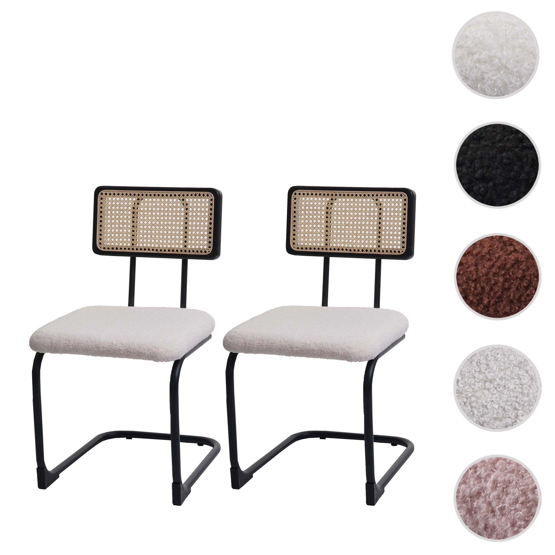 Cosmo Casa - Set van 2 Sledestoelen - Hout, Rotan & Metaal - Bouclé Textiel - Wit | Standaard | €209,95