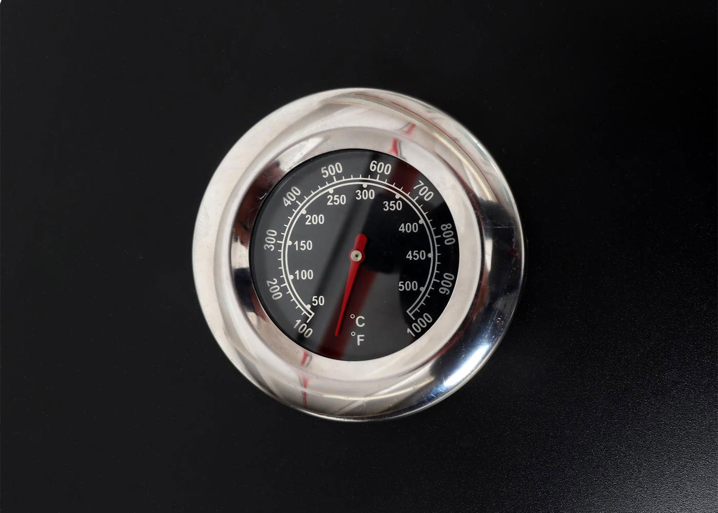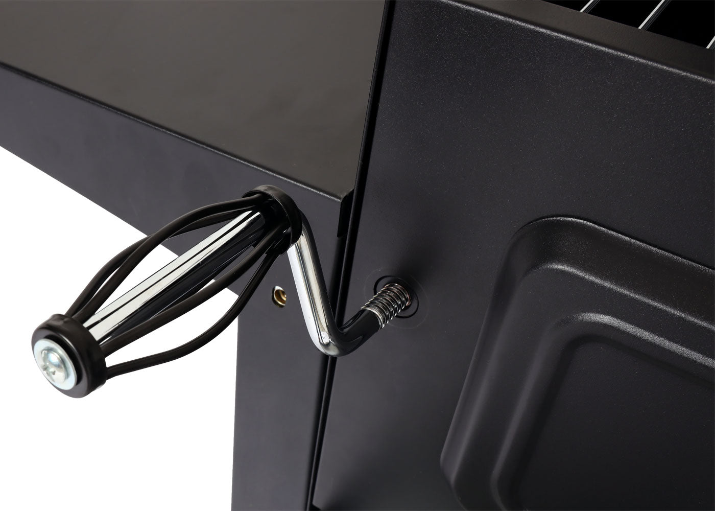 - In hoogte verstelbare vuurschalen voor warmteregulering- Vuurschalen van duurzaam emaille- Met geïntegreerde thermometer in de deksel- Inclusief verchroomd grilloppervlak (3 x grillroosters) en warmhoudrek- Zijplank met 4 bestekhaken - Stabiele voeten met 2 extra wielen- Verstelbare luchttoevoer a...