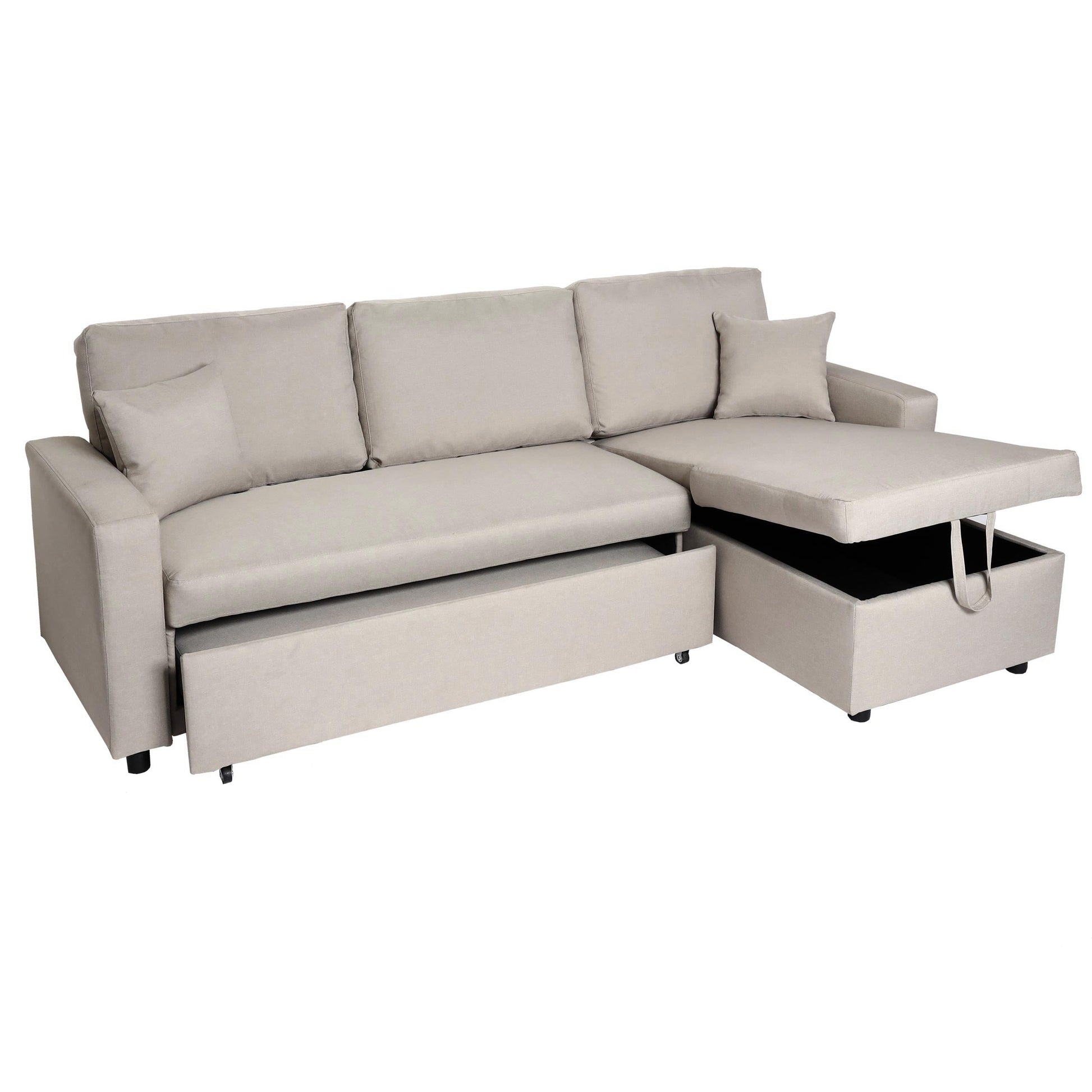 Cosmo Casa - Hoekbank met Bedkast - Nosag - Textiel - Beige - 228 cm | Standaard | ā¬2.329,95