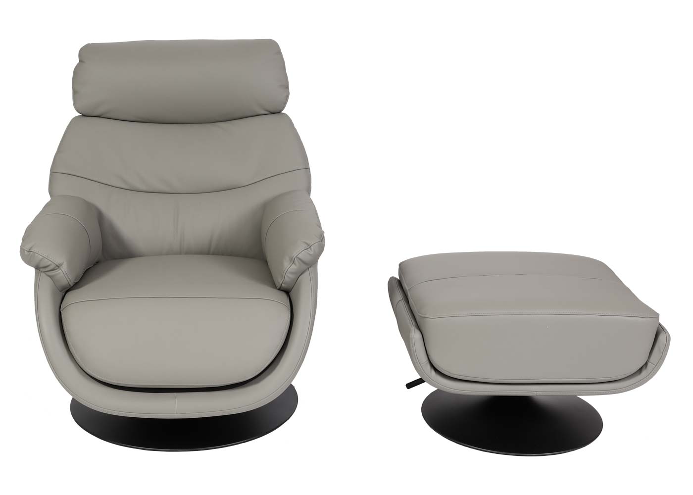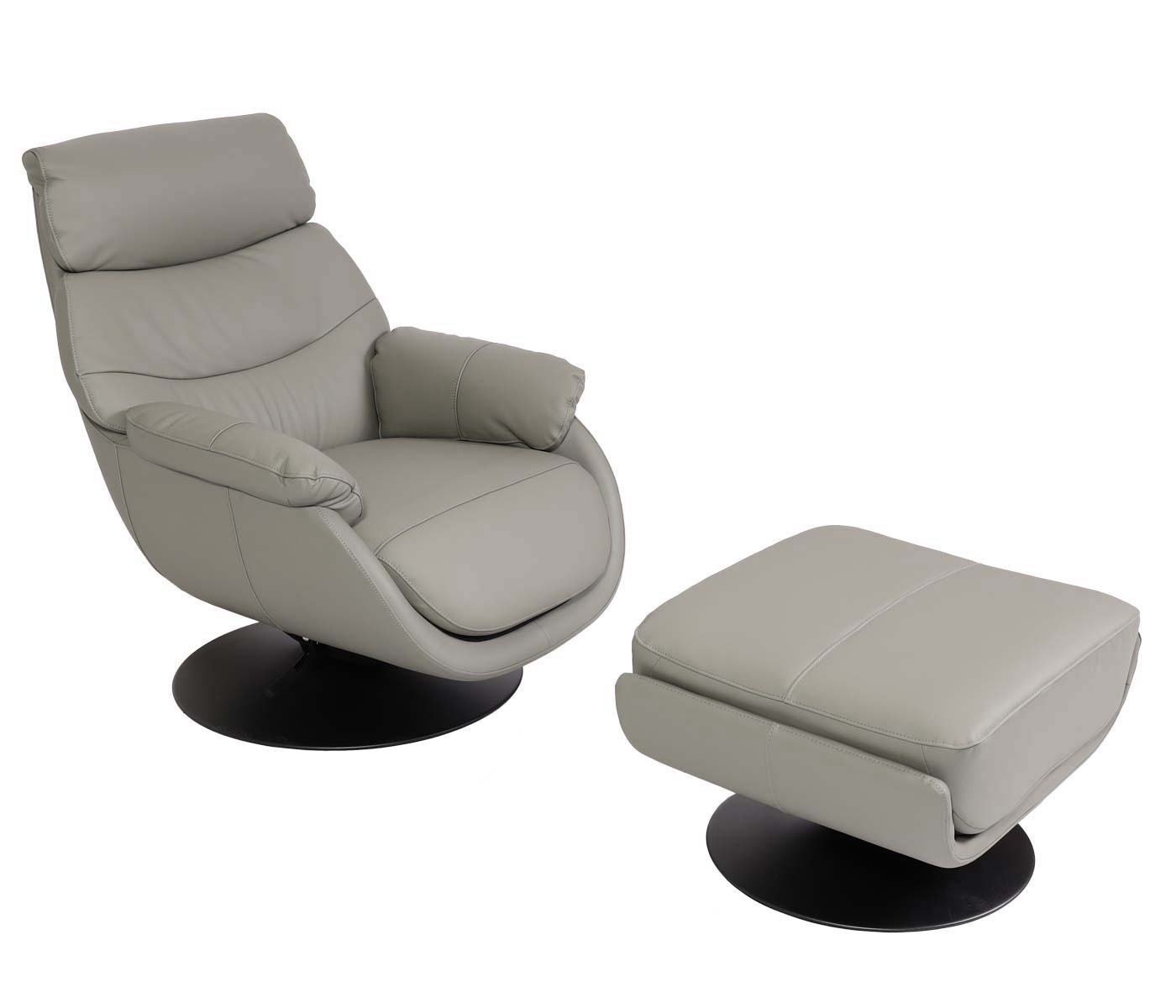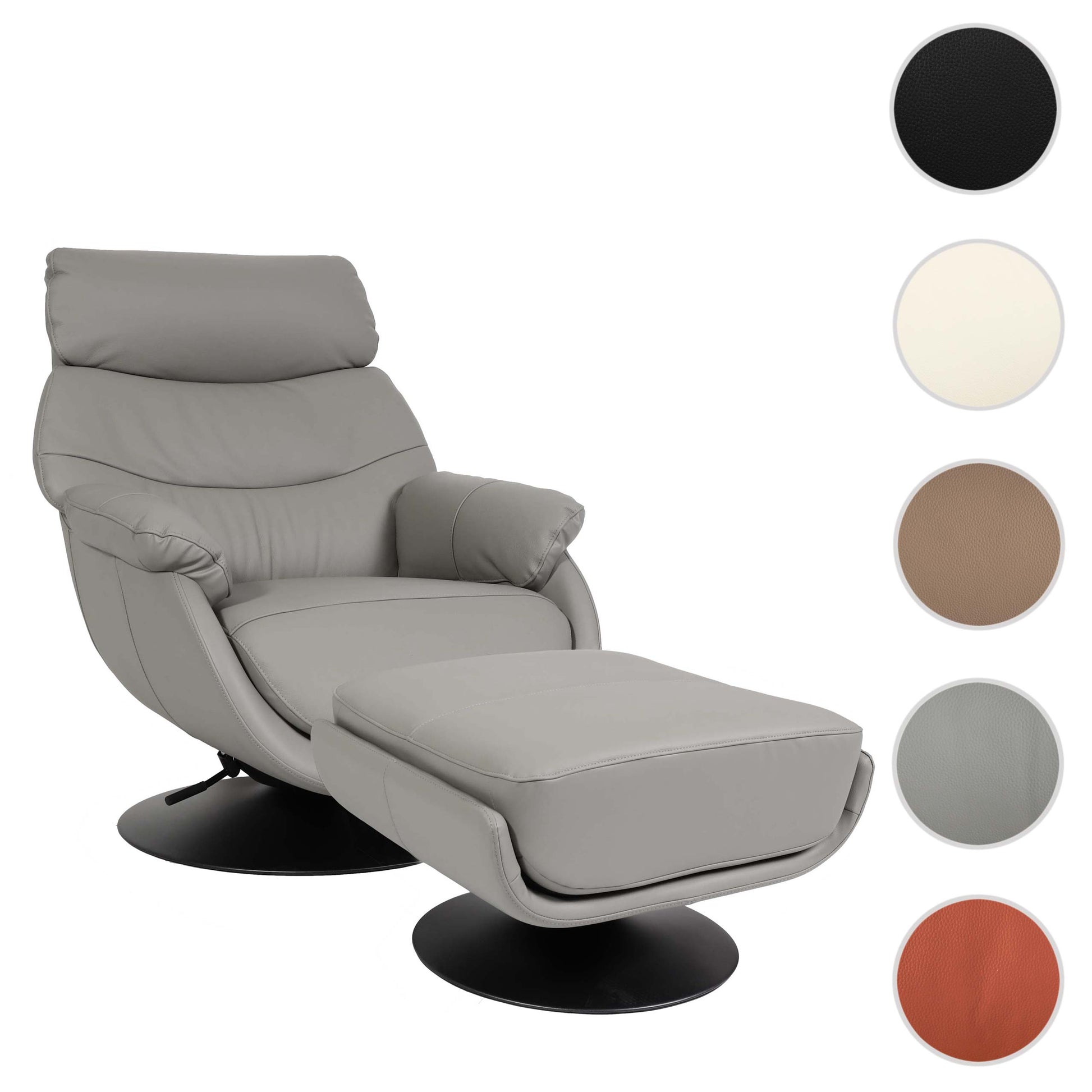Cosmo Casa - Relaxstoel met Kruk - Wipfunctie Draaibaar - Metaal & Echt Leer & Kunstleer - Grijs