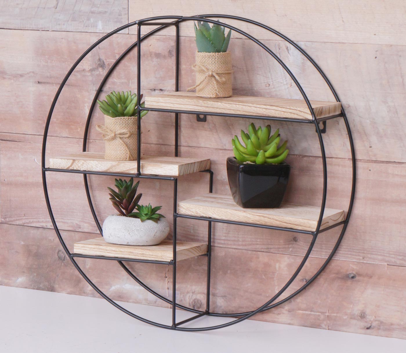 Cosmo Casa - Wandplank - Zwevend Hangend 4 Legplanken - Metaal en Massief Hout - Naturel - 45x45x11cm