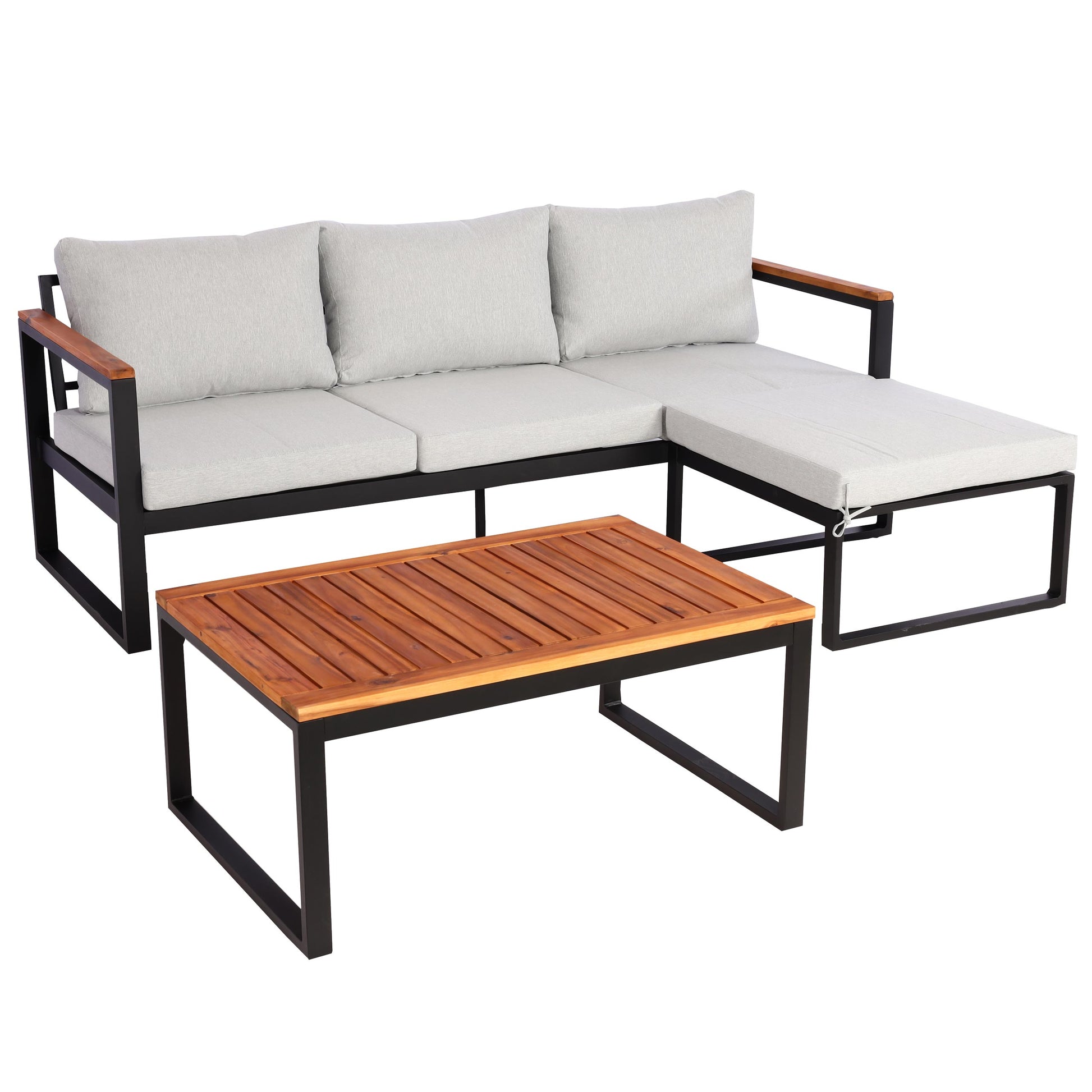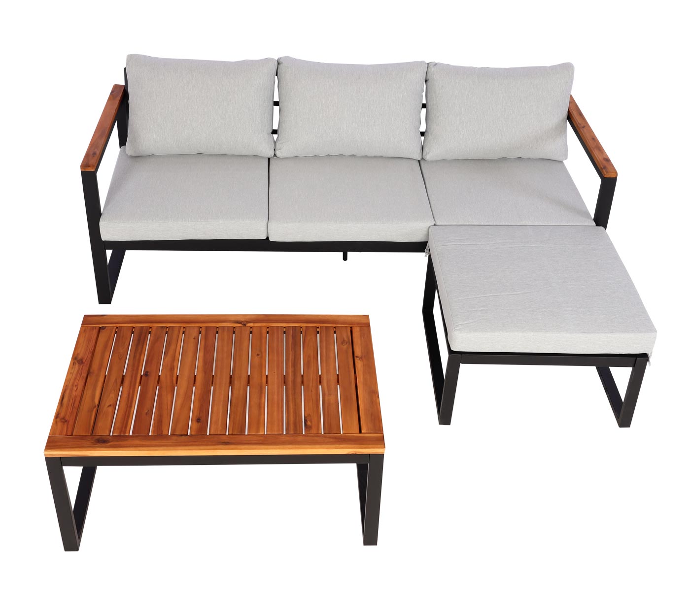 Cosmo Casa - Tuinset - Zitgroep Lounge met Bank - Aluminium & Acaciahout - Lichtgrijs | Standaard | ā¬1.899,95