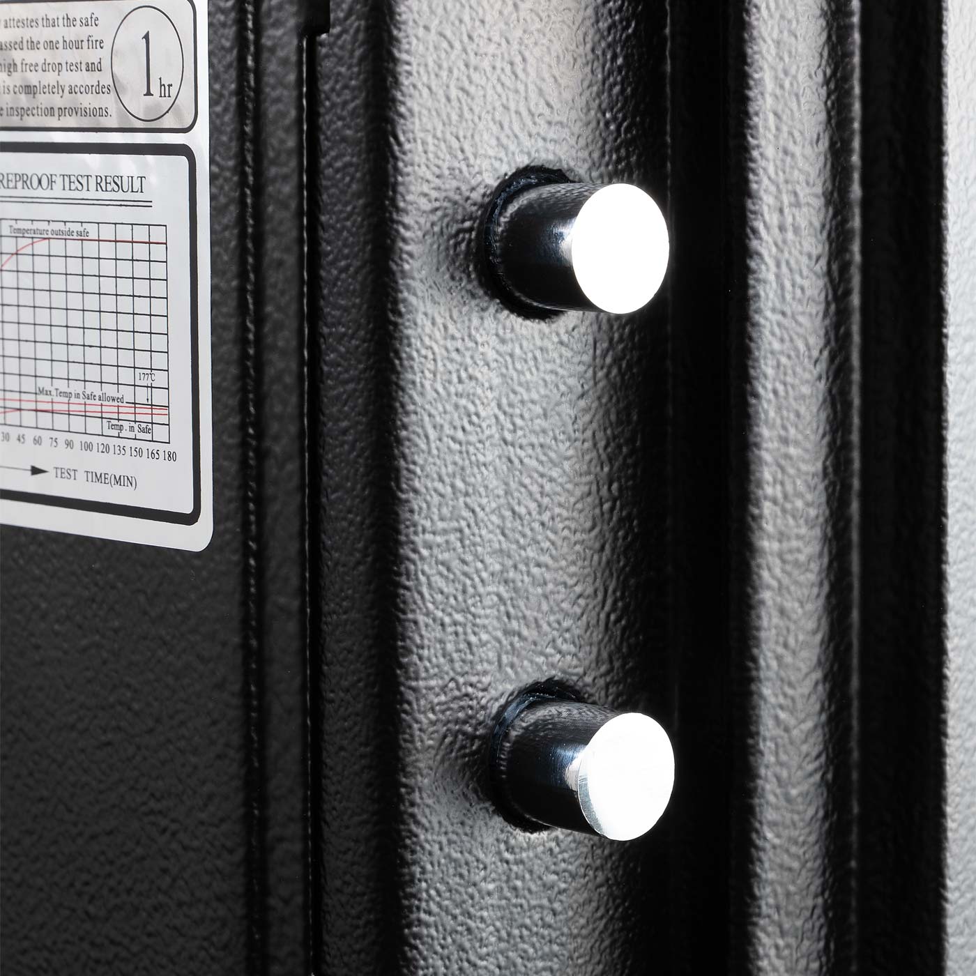 - 4-cijferige numerieke code- Stalen deur met dubbel grendelslot- 2 sterke stalen grendels (1,6 cm)- Dubbele beveiliging dankzij slot en code- Inclusief twee reservesleutels- Brandbeveiliging tot een uur volgens de Amerikaanse brandbeveiligingsnorm UL 72 - Vertrouw op de stalen deur met dubbele gren...
